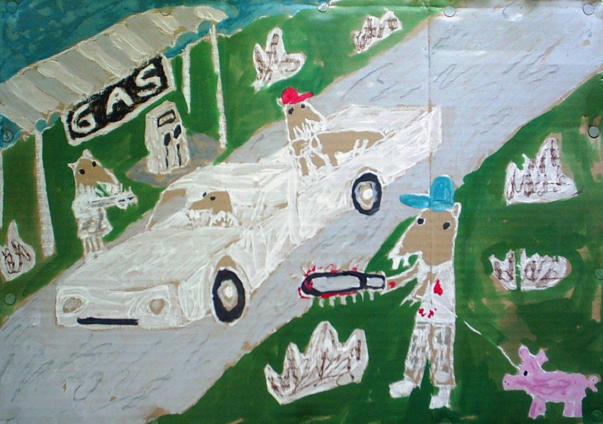 Faux-naive paintings with satirical undertones that elude to the more deviant aspects of modern society.