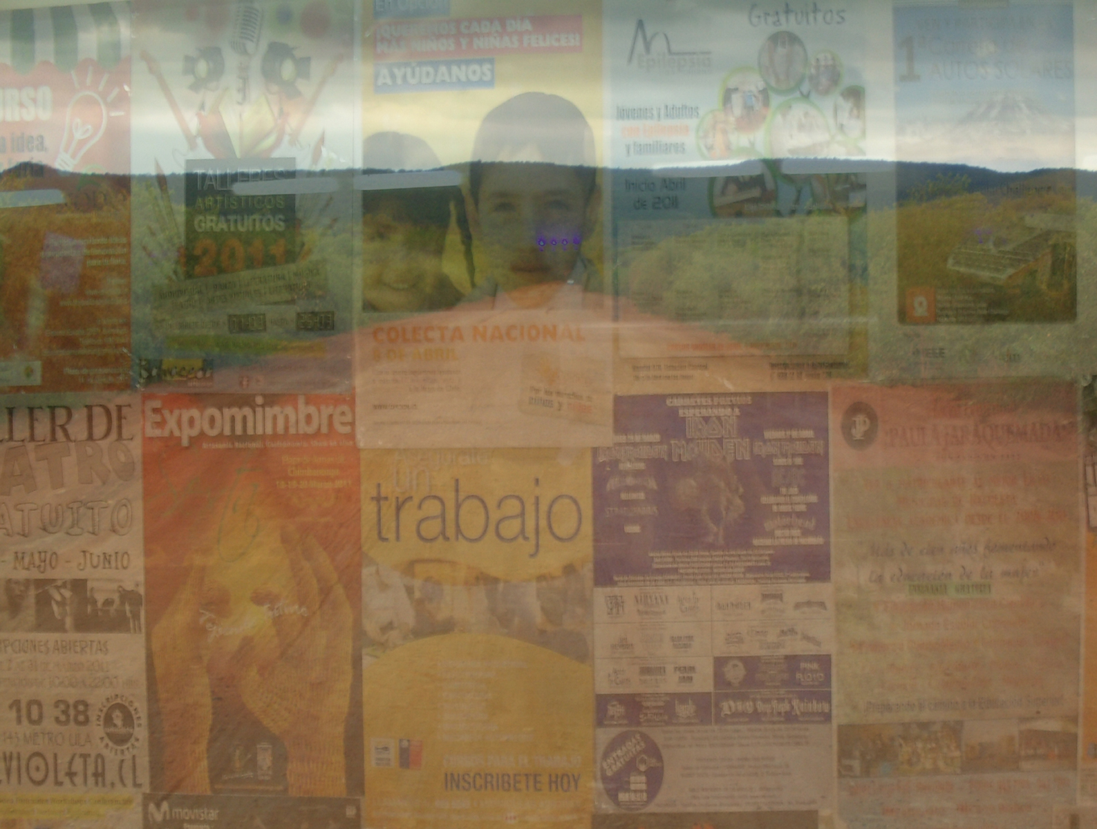 América Explorada (América Exploited/Explored) is a digital collage made from images captured during trips through the Americas from 2009 to 2011. By mixing natural and urban/constructed landscapes, the work calls attention to the exploitation and exploration (same word in portuguese) of land, people and work - aspects of the social and political context of the places visited during the journeys through the Americas. In this work a highway being constructed across Bolivian and Brazilian borders, through the forest, is superposed with an advertising mural photographed in urban Chile. Together with other five digital collages on canvas and two videos, the work was exhibited in Cotidiano & Mobilidade's exhibition at the Escola de Artes Visuais do Parque Lage, in Rio de Janeiro, Brasil, July - August 2011.