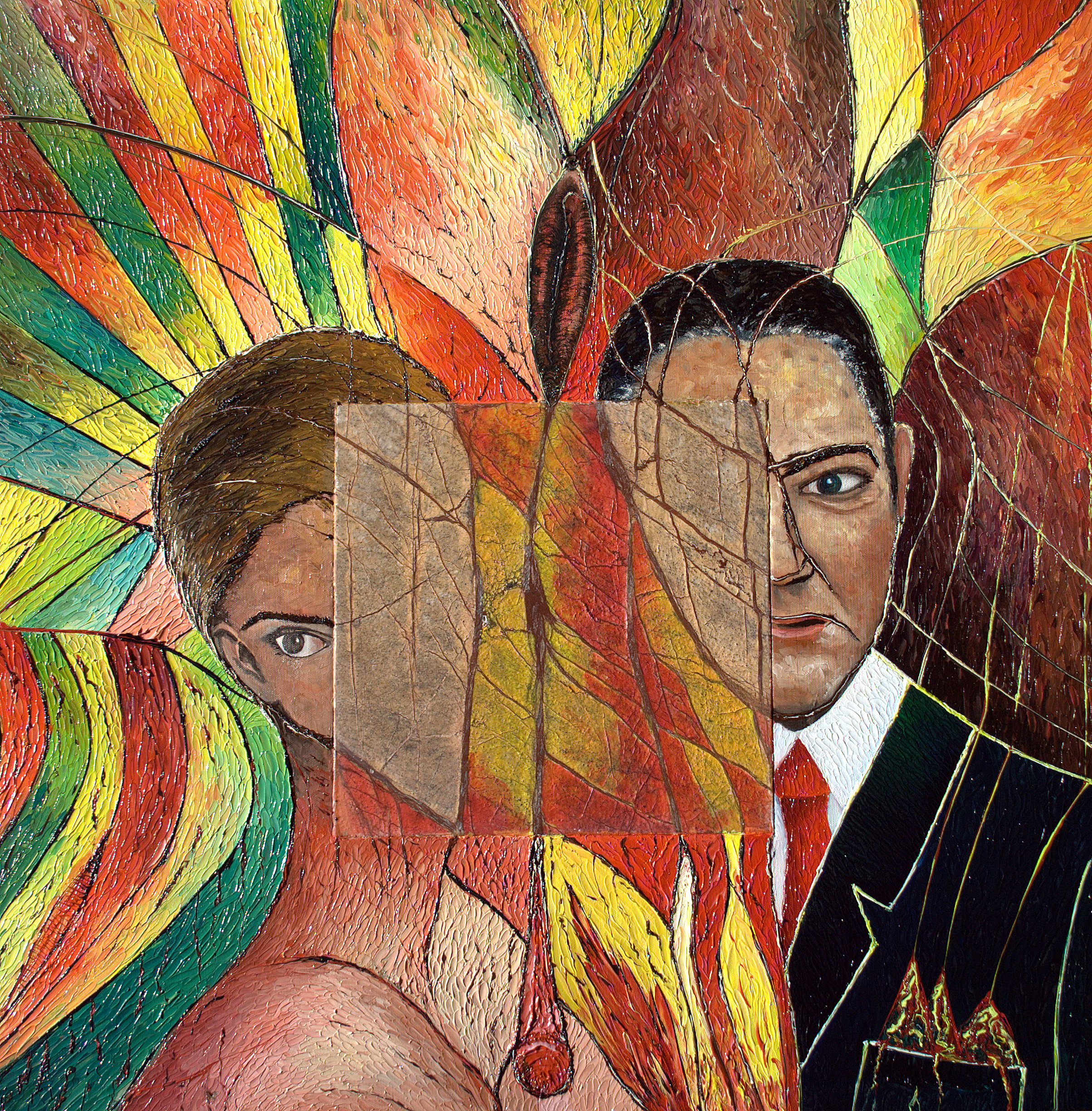il significato? noto le due figure con il viso appoggiato su una parte di nudo femminile sdraiato con in evidenza il sesso.