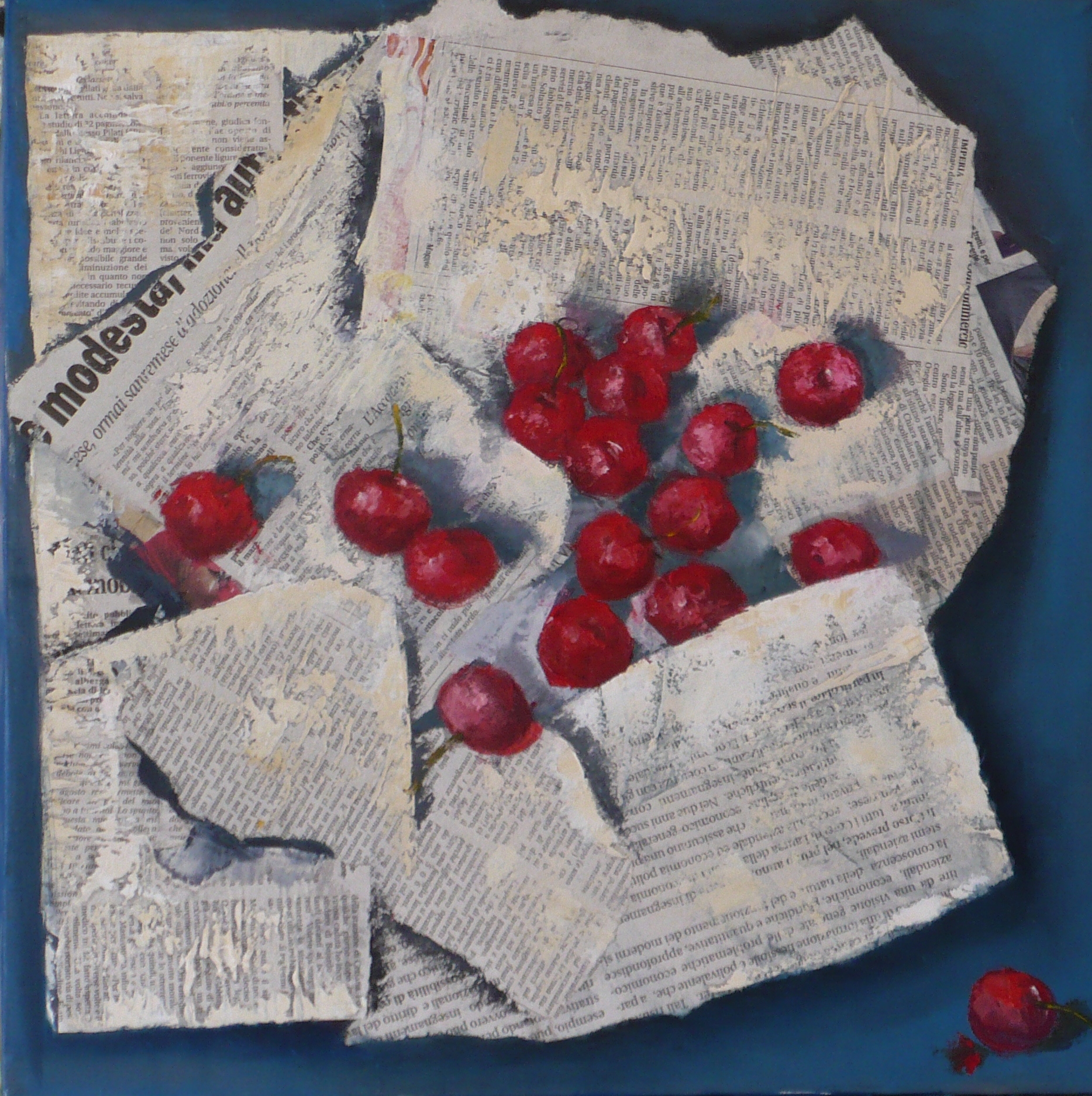 Ciliegie su giornale Painting, Still life, Mixed technique, 40x40x3cm Canvas Mixed technique ciliegie Added 13 years ago 16 I Like I don't like 11 Comments 261 Visits Share Facebook Twitter Google + Has been liked by 16 Tanya Bartolini Premium Artist - Milano, Italy Marcello Zanonato Artist - Padova, Italy Angela Loennig Artist - Athens, Greece samanta valente Artist - Salerno, Italy Lucia Ghirardi Artist - Trieste, Italy Guido Ruglioni Artist - Pescia, Italy Reima Honkasalo Artist - Kaarina, Finland Massimiliano Ligabue Artist - Lodi, Italy Ariella Vraneski Premium Artist - Haifa, Israel ENZO PIROZZI Artist - Pescia, Italy Luisa Vailati Artist - Bergamo, Italy Rossella Santoro Artist - Roma, Italy Associazione Roberta Smedili Institution - Messina, Italy Souad Nasr Makhoul Artist - Haifa, Israel Cat Photographer - Strasbourg, France france Artist - Varese, Italy Say something Comments 9 13 years ago ENZO PIROZZI Artist brava monica, mi hai fatto venire voglia di ciliegggggggggggggggggie!!!menomale che nn aspetto un pupo.Cmq opera veramente bellissima 10 e lode x me 13 years ago Barbara Ghisi Premium Artist meravigliosa!!! Il rosso e il bianco del giornale contrastano in modo meraviglioso. Bravaaaa 13 years ago Maria Cristina Neviani Artist Una composizione visivamente molto suggestiva, con contrasti cromatici equilibrati...sempre brava, Monica, ciao! 13 years ago GIULIART Artist da mangiare subito !! 13 years ago Associazione Roberta Smedili Institution fantastichevolmente belle. 13 years ago Souad Nasr Makhoul Artist beautiful arrangement and fantastic inspire! 13 years ago mauro ceselli Artist super!!!! 13 years ago Cat Photographer Elles ont l'air goûteuses ;) 13 years ago france Artist mi piace :))) view all 11 comments Say something You must login or Sign Up to write a comment Join