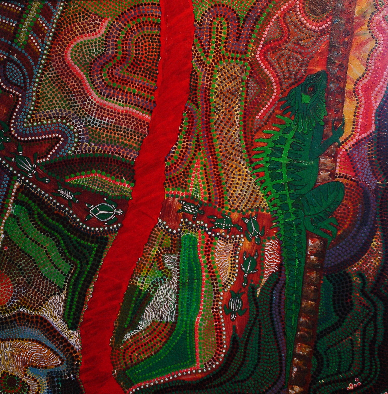 Just follow the orange rope if you want to experience the life of the rainforest. Here there are birds, gigantic trees, snakes, insects and other strange things. But mainly it's a world filled with colours and peace; good for your soul.