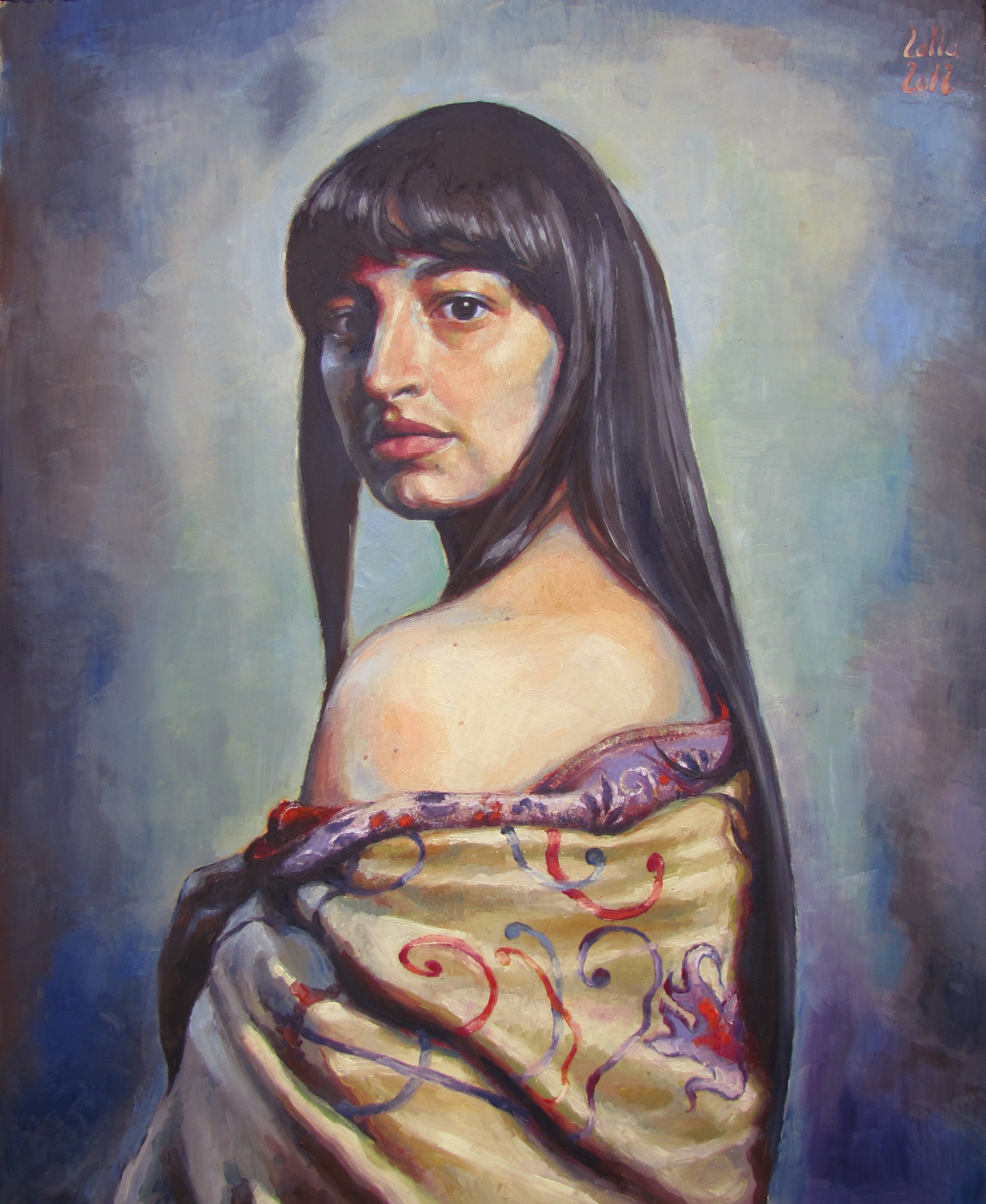 autoritratto con sciarpa di seta