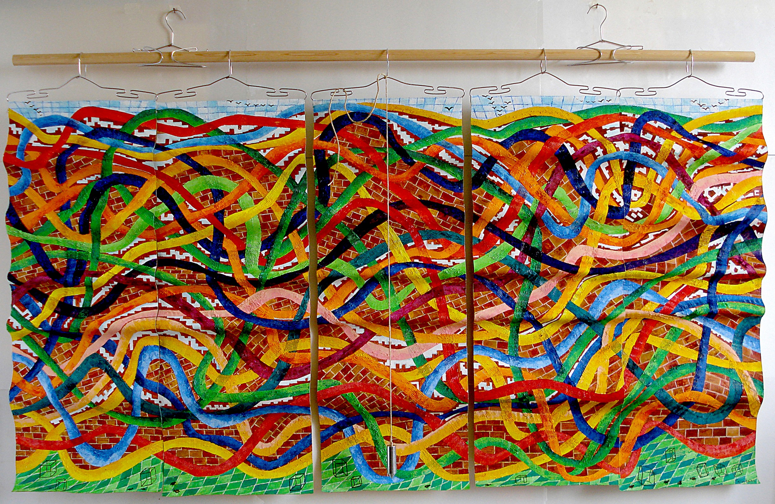 l'intreccio di strisce colorate come gli intricati e imperscrutabili percorsi di ogni vita.Ma è proprio necessaria la verticalità? o non è meglio uno sguardo obliquo?