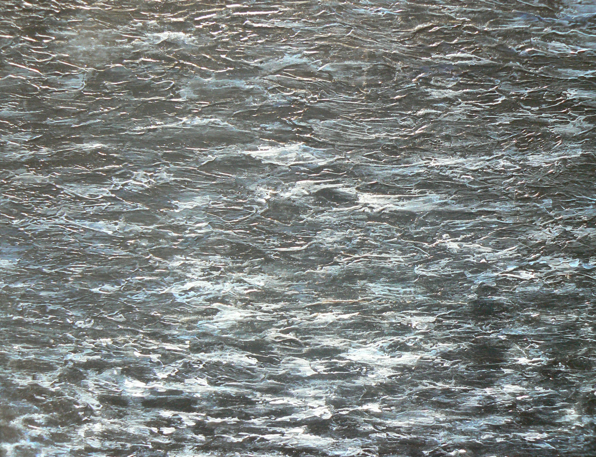 The work is part of a cycle of paintings dedicated at an important subject: the water.Thisone in particular rapresent the sea, a deep sea, dark and mysterious with a variable nature, full of secrets that we think to know as a whole. I used the sea as a metaphor of the life also variable and mysterious the meaning of which escapes us.