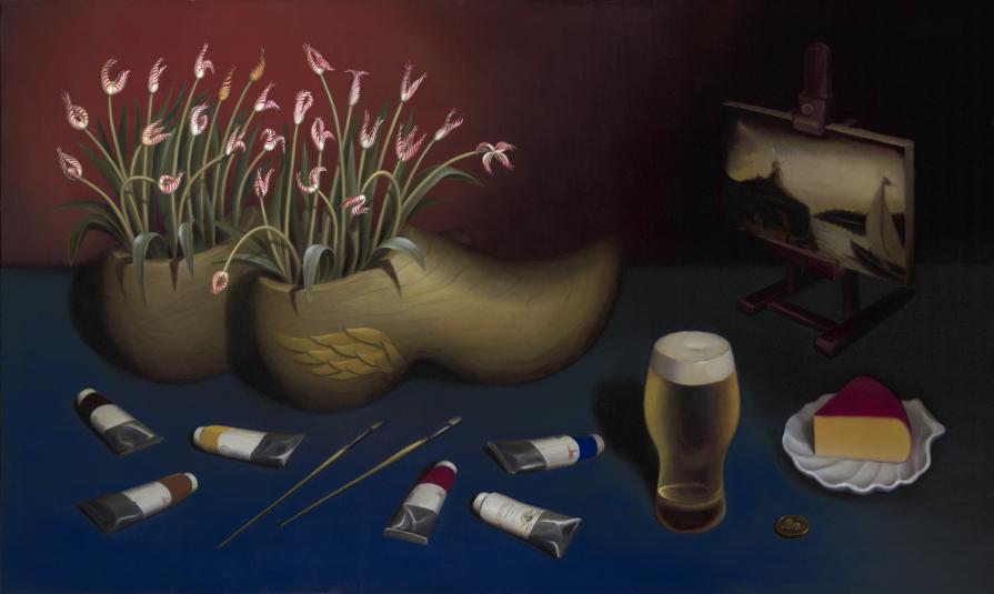 The painting depicts the broad range of industries the Italians have influenced with their artistic innovation including design, music, fashion, engineering, and cuisine. The display of Jesus’ foot alludes to the Catholic Church’s grand tradition of influence, support, and preservation of art, which ultimately helped Italy become a “museum under the open sky.”