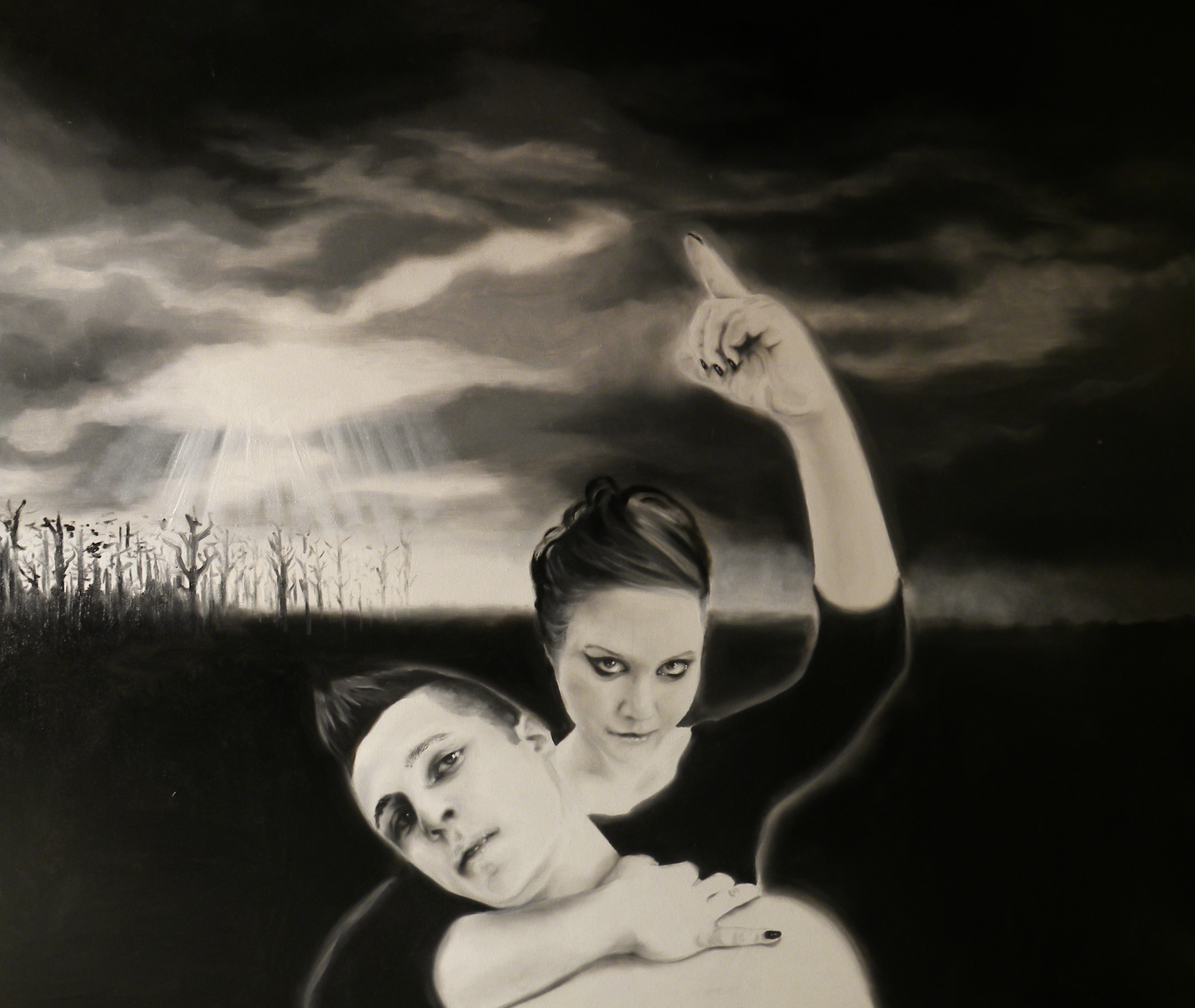 Ho avuto modo di vedere un tuo lavoro "live":)) qualche mese fà perchè esponevo anch'io ad "Affordable art fair" e devo dire che sono rimasto profondamente colpito:trovo che tutto il tuo lavoro si pervaso da un simbolismo "Opaco" che seduce all'istante per tecnica,e tonalità e composizione.Anche in questo dipinto tutto è estremamente riusciuto e il gioco "romantico" nasconde sempre qualcosa di gustosamente sinistro.Complimenti!