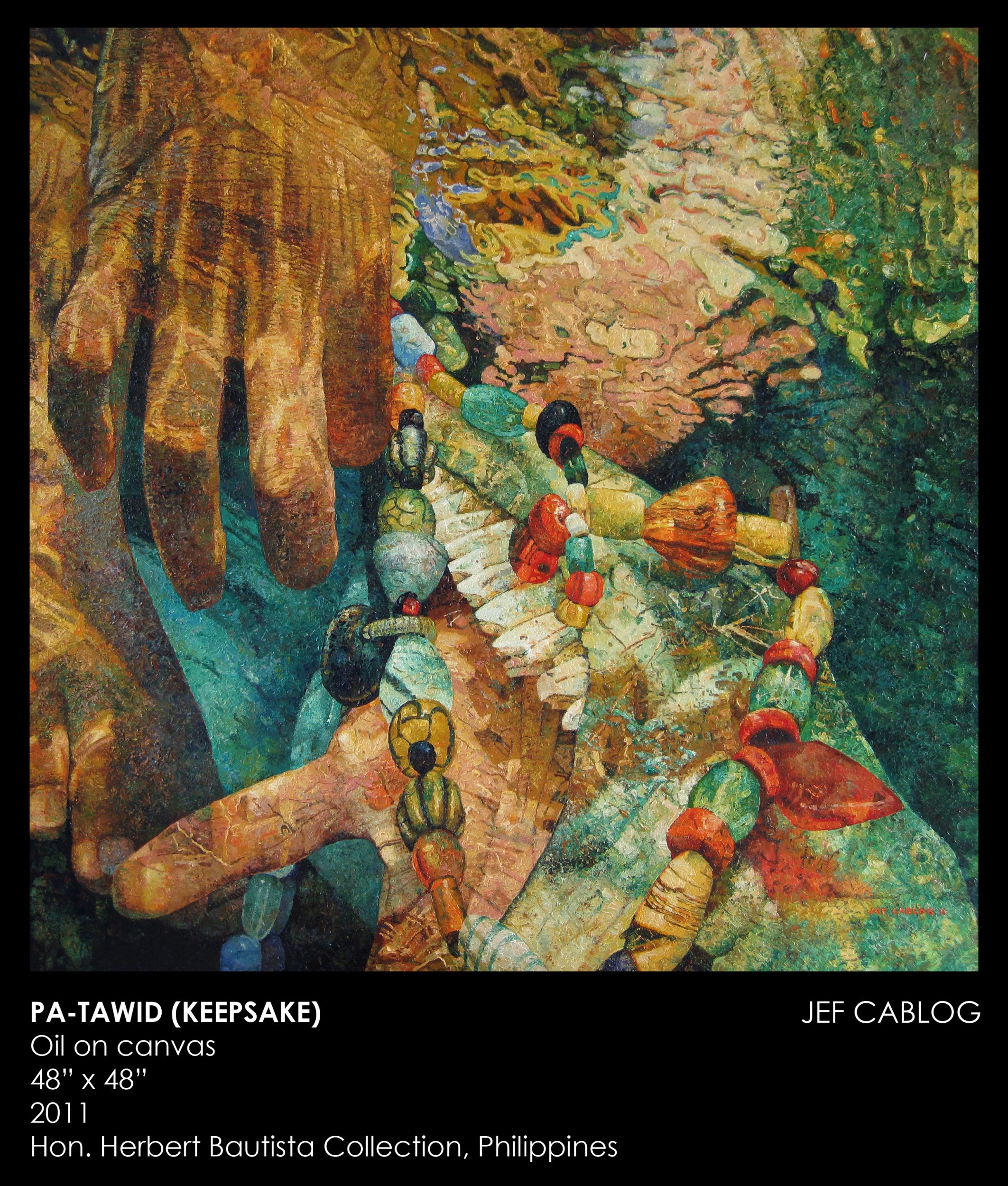 PA-TAWID (KEEPSAKE) Painting, Abstract informal, Oil, 122x122cm Canvas Oil tribal oil painting jefcablog filipino artist baguio city philippine art mountain province Added 13 years ago 1 I Like I don't like 1 Comment 253 Visits Share Facebook Twitter Google + Has been liked by 1 Roberto Iabichella Artist - Modena, Italy Comments 1 13 years ago Roberto Iabichella Artist Wonderful Say something You must login or Sign Up to write a comment Join