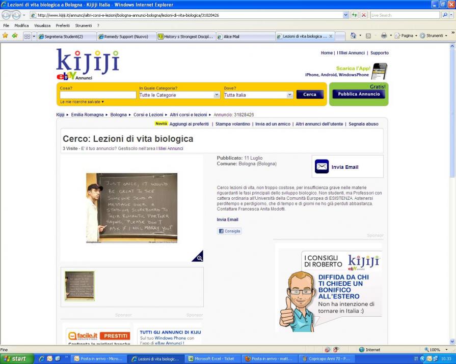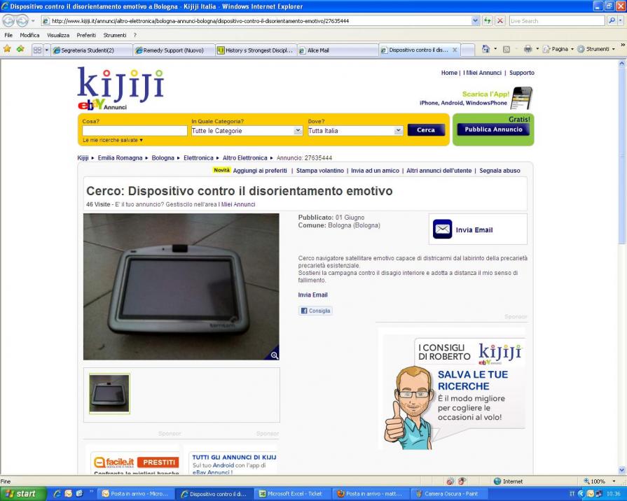 Ma daì:)) Gran cortocircuito linguistico... che si permuta conseguentemente in uno socioculturale. Queste "mine" personalizzate (chicche surreali,liriche,paradossali,iperboliche) entrano nel cuore della rete defragrando con il loro potenziale poetico .( Davvero curioso di leggere le risposte a tali "sublimi" annunci dove il "significante" viaggia a testa alta::)))Complimenti!