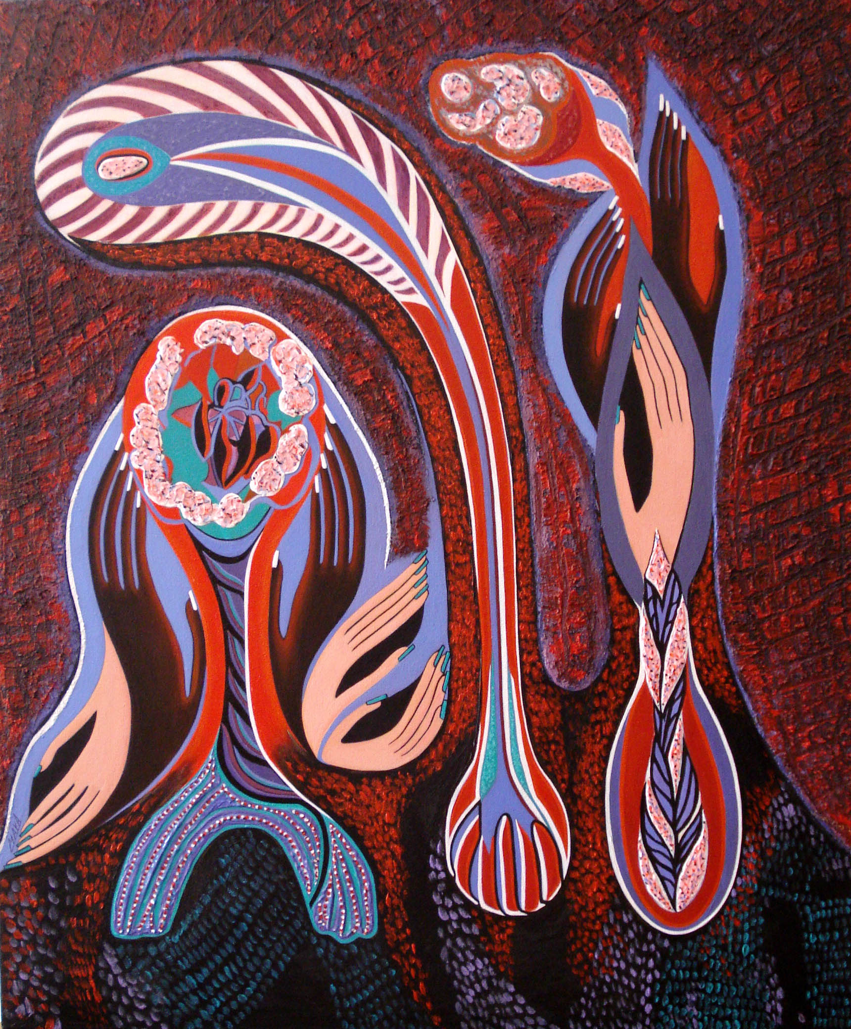 Fresh and unique impression. It tuch the human inson nd the free sprit. This is a great painting . This is present the tide relationship between the artists heart and the rue nature looking to free herself. The artist is saying look i am growing freely.