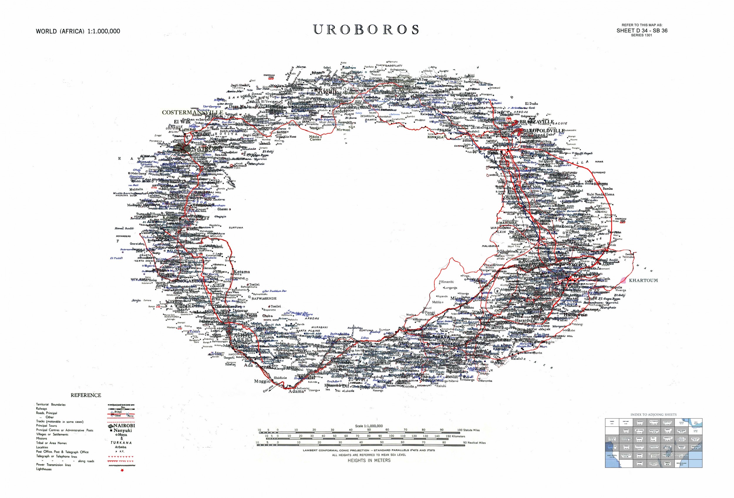 In my work is such a snake/circle made from the names of towns and villages in Central Africa.