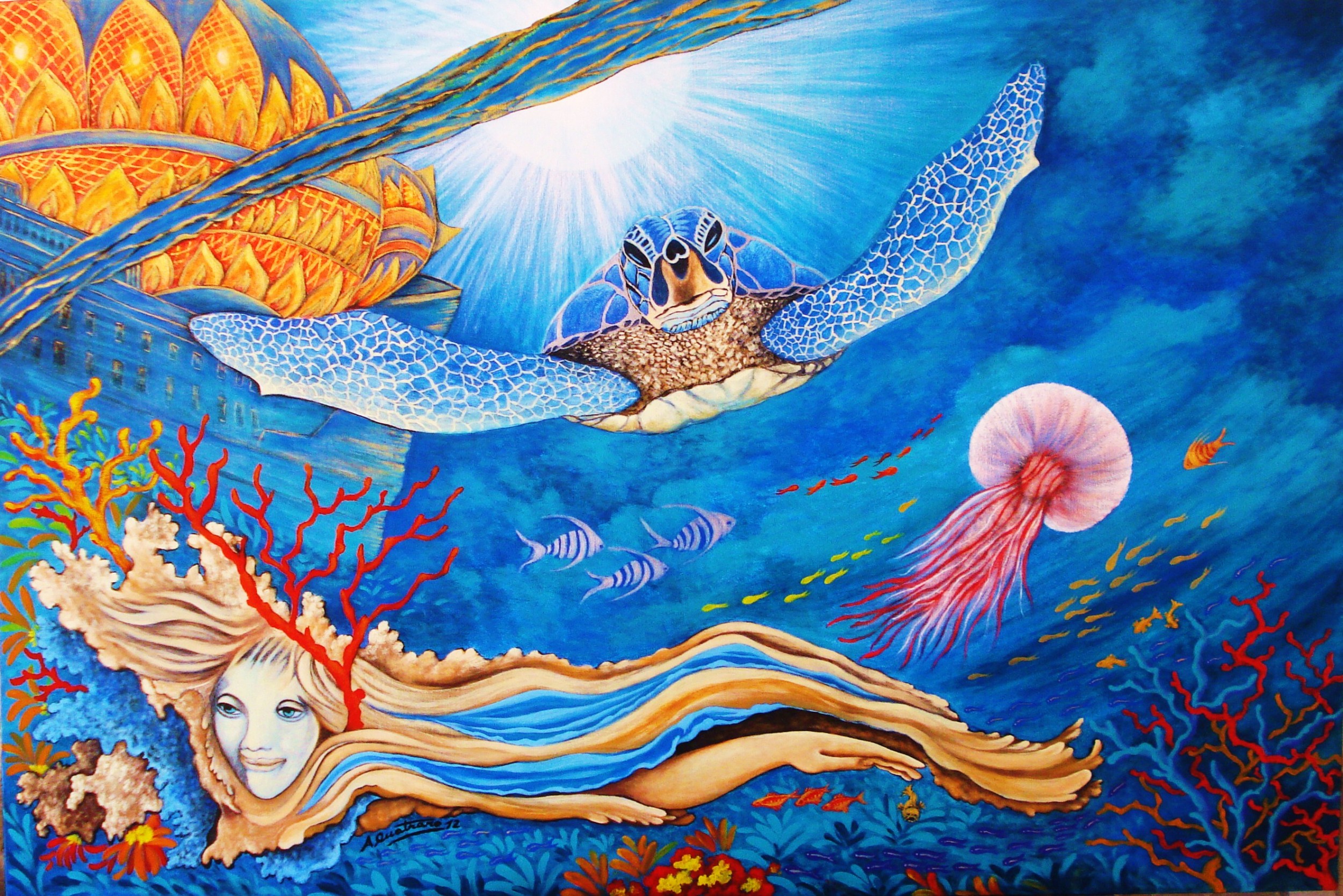 "SALENTO" Painting, Landscape, Acrylic, 120x80x3cm Canvas Acrylic Added 13 years ago 5 I Like I don't like 6 Comments 192 Visits Share Facebook Twitter Google + Has been liked by 5 Tanya Bartolini Premium Artist - Milano, Italy Francesca Callipari Curator, Gallery, Organizer - Firenze, Italy Annamaria Niccoli Artist - Lecce, Italy Stefania Rinaldi Artist - Firenze, Italy Valentina Moro Artist - Milano, Italy Comments 5 13 years ago Schirà * Artist Una bellissima opera complimenti 13 years ago Stefania Rinaldi Artist Bellissimo Antonio, il fondo del mare è qualcosa che penso di dipingere da molto tempo... ma penso che rinuncerò.... quello che hai fatto è troppo bello e appaga il mio desiderio di vedere cosa c'è sotto l'acqua del mare sulla tela! 13 years ago GIULIART Artist It s good 13 years ago Antonio Quatraro Artist Grazie x il vostro sincero commento. Ciao 13 years ago Cat Photographer Mystérieux, de belles couleurs et féerique ! Say something You must login or Sign Up to write a comment Join