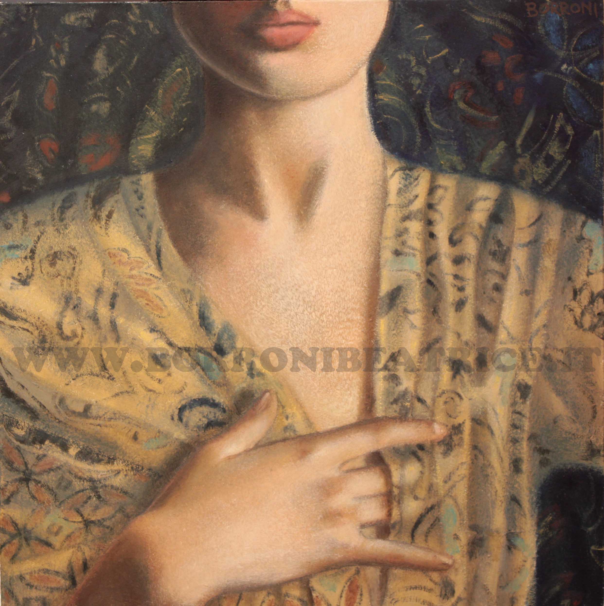 I tuoi lavori vivono tutti di una straordinaria staticità che li rende astorici come astorico è il racconto del tempo sospeso nella sacrale sensualità di un gesto,di uno sguardo, di un offrirsi inspiegato.Meravigliose creature che percorrono silenzi parlati ,spazi di tessiture cromatiche magiche,pretesti per una pittura di spessore ricca di citazioni e di raffinatissima tecnica.Complimenti davvero.