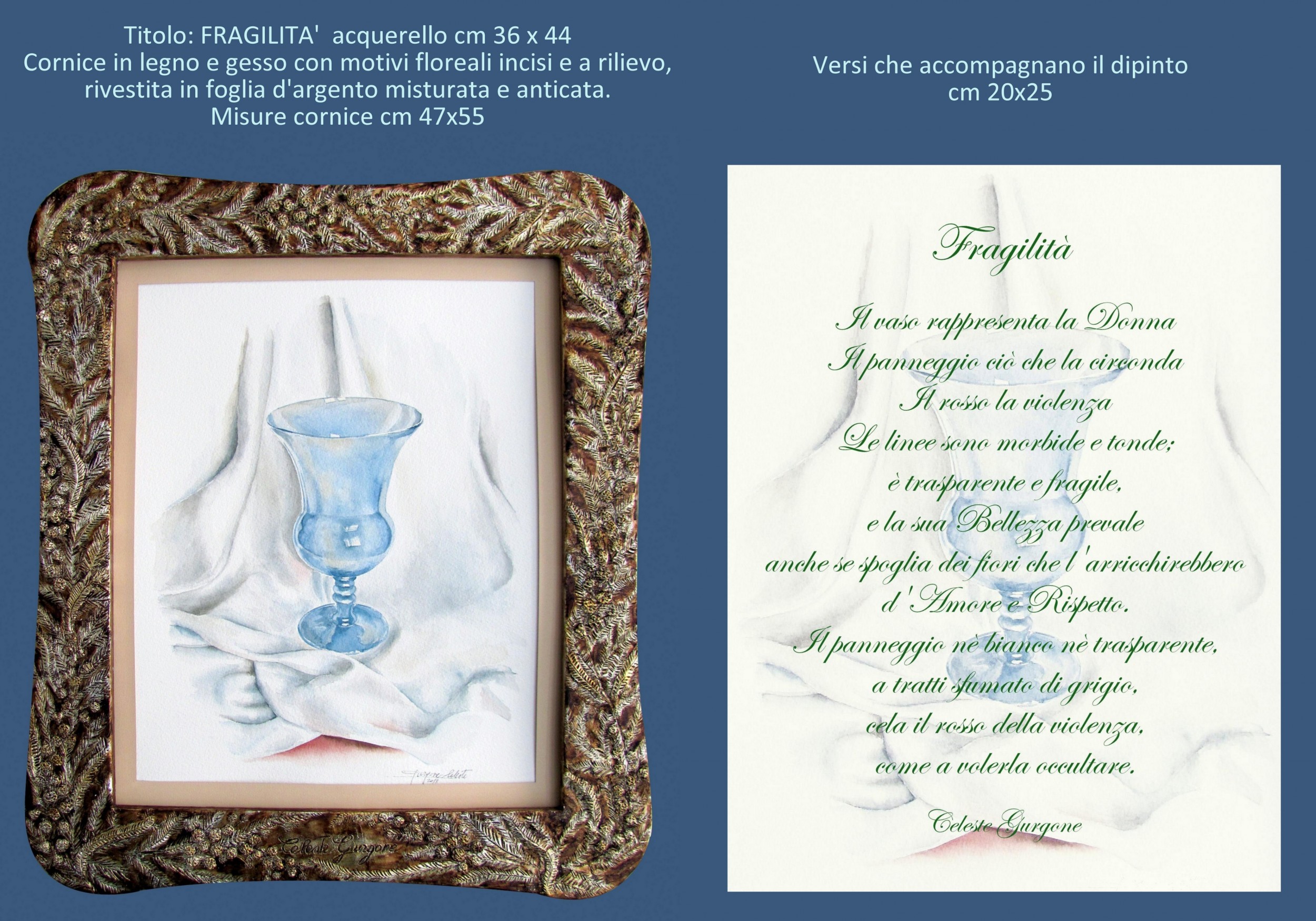 Fragilità Watercolor, Philosophy, Political / Social, Watercolour, 36x44cm Cardboard Watercolour Celeste donna lacrime violenza libertà società disagio oppressione Added 12 years ago 1 I Like I don't like 0 Comments 195 Visits Share Facebook Twitter Google + Has been liked by 1 Tanya Bartolini Premium Artist - Milano, Italy Comments 0 Say something You must login or Sign Up to write a comment Join