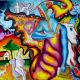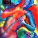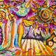 This painting depicts the birth-transformation of the infinitely large and the infinitely small. The central figure is the "man-pupa-" like a butterfly trying to break free from the old shell to explode in its beauty and wisdom.