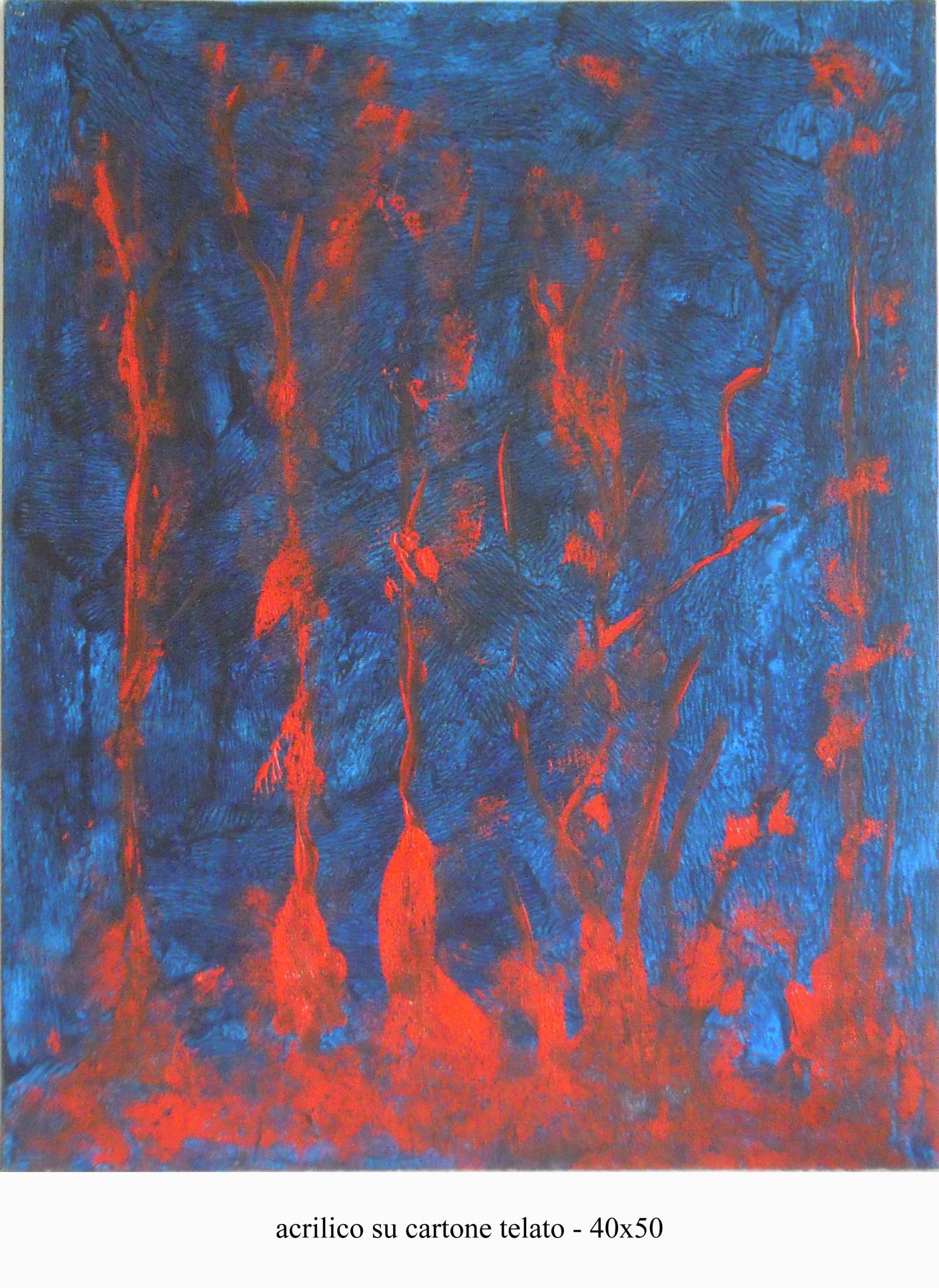 pioggia sulle fiamme Painting, Emotion, Abstract informal, Acrylic, 40x50cm Cardboard Acrylic Blue pioggia fiamme Added 12 years ago 3 I Like I don't like 0 Comments 141 Visits Share Facebook Twitter Google + Has been liked by 3 Francesca Eudaimonia Curator - Roma, Italy Tanya Bartolini Premium Artist - Milano, Italy massimo desiato Artist - Pescara, Italy Comments 0 Say something You must login or Sign Up to write a comment Join