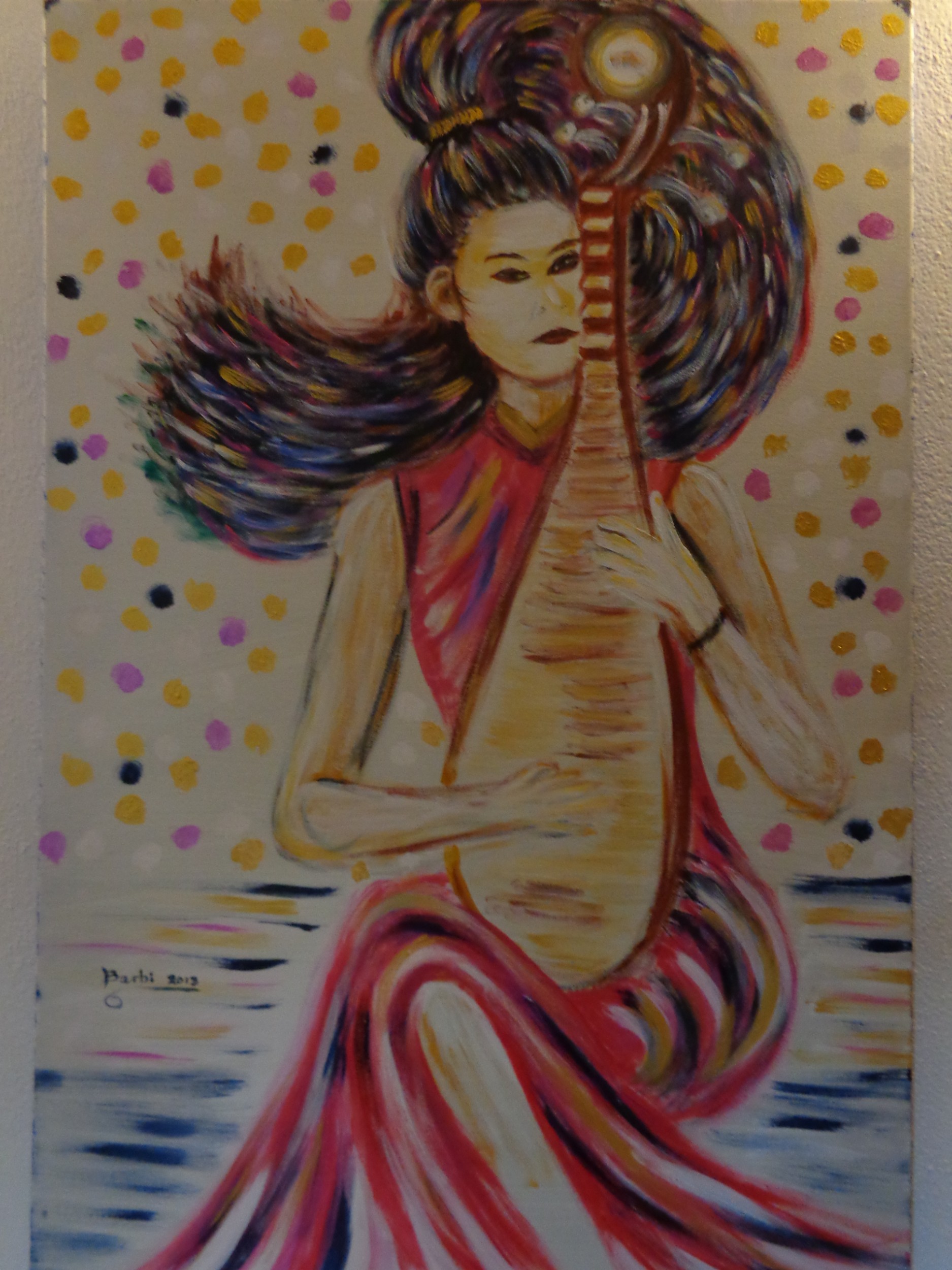 una musicista che nasce direttamente dalla natura dei fiori fa il suo vestito e dell'aria i suoi capelli.Intona una musica e le sue note colorano il cielo,bravissima