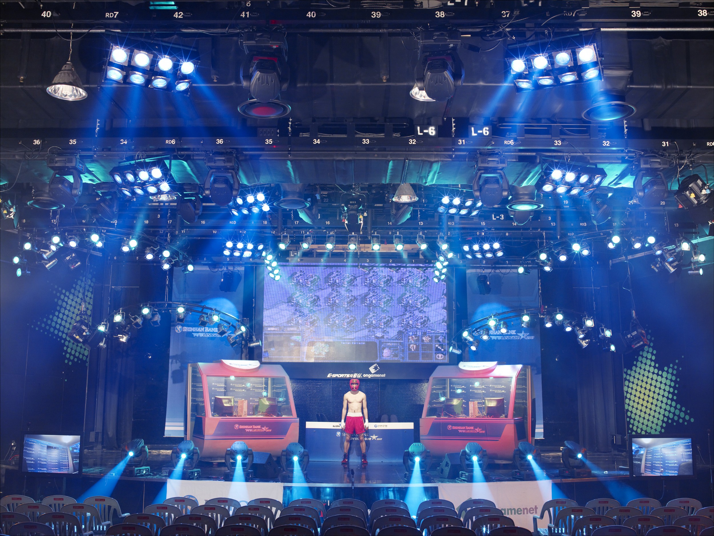 the individuals/society and the merging of reality and fiction. Secondly, by actually placing real people (not actors) who are not part of the television production process within the artifi- cial setting of the real Korean network studios, I empower the individual to create their own fiction on stage.