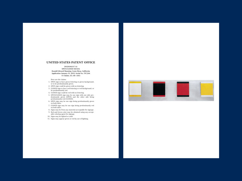 A Provisional Patent Application Status Indication Device, called Rebus is the result of a co-operation between the artist and a patent agent which began when the artist consulted the agent for the preparation of a patent application. The consultation required both parties to sign a mutual nondisclosure agreement prohibiting the publication of any confidential information about the invention. Incited by these events Oscar Hugal asked the patent agent if she could provide him with 3 existing applications and an equal amount of 20th century artworks that could function as ‘prior art’ or reference points. The result is —among others— a set of three prints where each one is a juxtaposition between an image of an existing artwork and a patent application. The work is constructed as a riddle and aims to indirectly describe the original invention.