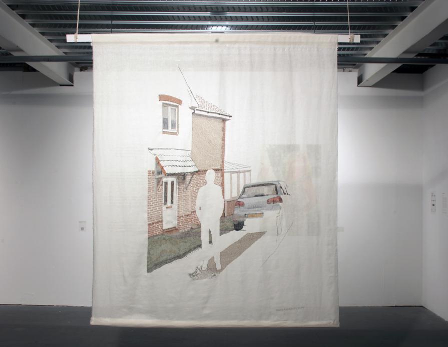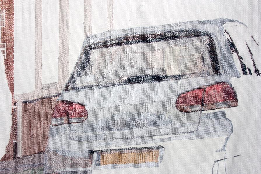 The work fuses new media and traditional craft to tell a story of a Russian woman who pursues her dreams in the West. Tapestry is a hand-made unfinished embroidered canvas is based on a photograph I took to depict the woman’s idea of what she was searching for on the matrimonial websites. The technique I used, a cross-stitching, was a widely spread and up until the second part of the 20th century was mostly used by working class women to decorate domestic cloths for daily use or a dowry, or by middle-class women for their own pleasure and pastime. As an artist, who did hard labour on this art piece during six months, I could relate to the sacrifice and labour this woman had to put into her immigration process. The tapestry is accompanied by a sound piece, the woman’s monologue, which was restaged and edited to keep the woman’s identity anonymous. The sound piece opens up complexity of the marriage for the Russian woman with an English man and dilemmas she faces on her journey to her dream. Working with combination of traditional crafts and new technologies, I tend to query a place of women in contemporary society within rooted traditions such as marriage and intercultural stereotypes. I am interested in how women from different cultures have been affected by new global developments such as greater and cheaper mobility, the spread of Westernization and easy access to information. (The work consist of an cross-stitched tapestry (152 x 180 cm, unique piece) and a sound piece (stereo, 13min). The sound piece can be played from here: https://soundcloud.com/mariakapajeva/fifty-fifty ).