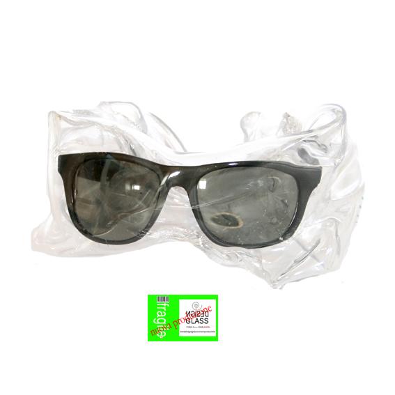 This personal objects (shapes and characteristic elements of a generation) belong to everyday life that everyone lives but are crystallized in transparent glass plates that envelop those objects prohibiting their use. For this reason they become icons of consumerism that are celebrated in their uniqueness and stylistic form, like pieces of pure design. They are introduced in the space like merchandise. Each one has its own cardboard packaging that is depersonalized and serial.