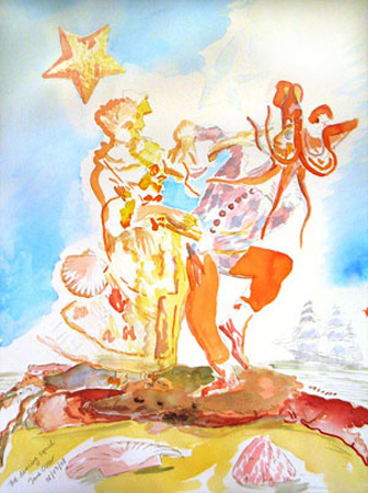 The Dancing Squid and the Coy Carp Watercolor, Fantasy / Visionary, Human figure, Political / Social, Watercolour, 40x80x1cm Paper Watercolour dancing ship courtship humorous satirical seaside dalliance Given as a gift on a significant birthday to my oldest friend. Added 16 years ago 2 I Like I don't like 0 Comments 229 Visits Share Facebook Twitter Google + Has been liked by 2 Tanya Bartolini Premium Artist - Milano, Italy Ettropeppe Artist - Pescara, Italy Comments 0 Say something You must login or Sign Up to write a comment Join