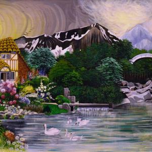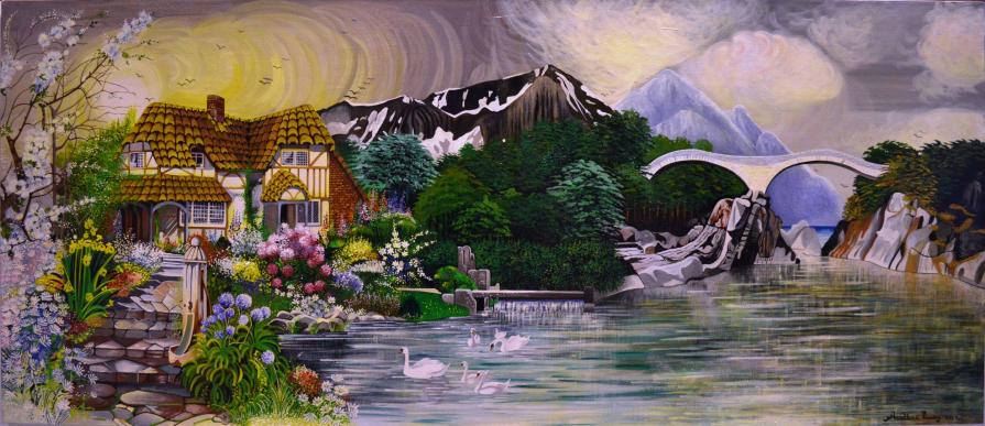 Il panorama dei sogni rappresenta una realtà che va oltre il confine della terra, la casa rappresenta l'uomo, la famiglia, l'acqua è fonte di vita e saggezza dove durante il percorso diviene fiume, lago, dove si fonde tra le rocce, dove tocca le corde dell'anima e scivola fin dove batte il cuore, dove l'amore si ricongiunge tra il principio e la fine della terra e l'inizio di una nuova era; Cosa si nasconde dietro le montagne, dietro al ponte? La visione continua nella prossima opera
