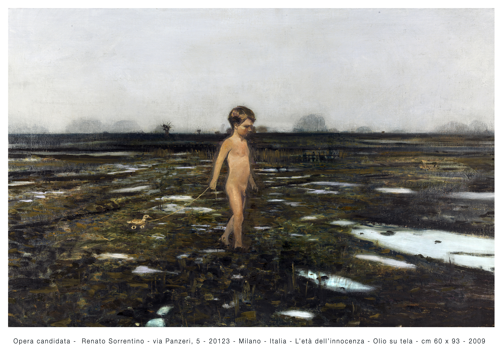 L'Eta Dell'Innocenza Painting, Human figure, Landscape, Oil, 93x60cm Canvas Oil Finalist Painting (Premio Celeste 2009) Added 16 years ago 27 I Like I don't like 25 Comments 2331 Visits Share Facebook Twitter Google + Has been liked by 24 Tanya Bartolini Premium Artist - Milano, Italy Federico Zamboni Architect, Artist - Roma, Italy Lorenzo Garin Artist - Firenze, Italy jaya suberg Artist - Berlin, Germany Edu Artist - Milano, Italy mary desmond Artist - Roma, Italy Elizabeth McDonald Artist - Glasgow, United Kingdom Egidio Granzo Artist - Venezia, Italy divakar venkataraman Curator - Vadodara, India Una d'Aragona Artist - Falmouth, United Kingdom ANTONIO CIVITARESE Artist - Chieti, Italy Cristina Sammarco Artist - Milano, Italy Maria Cristina Picciolini Artist - München, Germany Angelo Zani Artist - Reggio nell'Emilia, Italy Hideyuki Sobue Artist - Kendal, United Kingdom Nuria Armengol Artist - Barcelona, Spain View all Say something Comments 23 13 years ago gabriele parenti Artist bellissimo! 16 years ago Elena Falchi Artist Votata!!! molto sensibile, ciao Elena 16 years ago Leonardo Lenzi Artist Complimenti per essere entrato in finale, il tuo lavoro lo merita 16 years ago EleB Artist Opera che rispecchia molta sensibilità artistica ! Votata ! Complimenti !!! 16 years ago Antonio Laglia Artist Molto poetica 16 years ago Luigi De Cesare Artist Pura poesia nell'innocente tocco pittorico.Bambino indaco sicuramente! Votata. 16 years ago Gianfranco Castelli Artist VOTO!COMPLIMENTI! 16 years ago Alessio Ancillai Artist Non so dove guardare... Un capolavoro! 16 years ago Angelo Zani Artist Il massimo, te lo meriti. Complementi. Purtroppo in questo "gioco" molti "artisti" votano per convenienza e non per giudizio estetico. Ma poi, come "CelestePrize" dimostra, la giuria non ne tiene conto alcuno. 16 years ago Hideyuki Sobue Artist Very interesting work, indeed. Full of enigma and narrative. Beautiful work. view all 25 comments Say something You must login or Sign Up to write a comment Join
