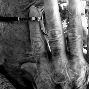 This is a project I did about the hands of a loved one who got ill with Alzheimer . I observed the changes in him and especially in his hands . I began to take photos and for two years I photographed the way his hands were trying to do things and how with every 2-3 months they could do less . Till after two years the hands , whom were so busy all his life , could not do nothing more than laying motionless . But in those hands one can sense and see the whole life of this Man . He loved , worked and grew a family . All this one can see in every spot and all creases of the skin .