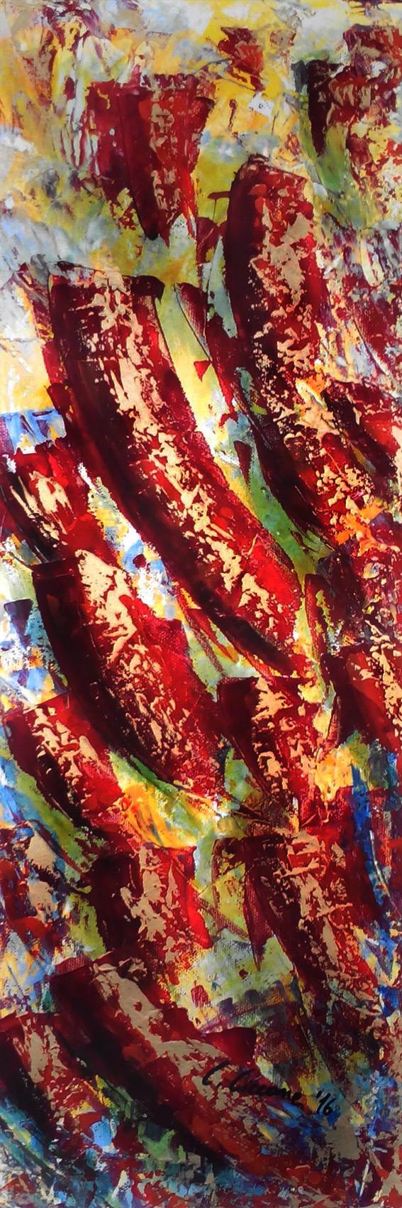 Rubino (1 di 3) Painting, Fantasy / Visionary, Emotion, Beauty, Abstract informal, Acrylic, 20x60x1cm astratto informale emozione bellezza spatola acrilico su tela colore_oro Added 8 years ago 22 I Like I don't like 2 Comments 250 Visits Share Facebook Twitter Google + Has been liked by 22 Thomas Dielman Artist - Brussels, Belgium carmelo compare Premium Artist - Montesarchio, Italy Iorio Vito Luca VIK Artist - Castellaneta, Italy Riccardo Ventoruzzo Photographer - Terracina, Italy EdCa Architect, Artist, Photographer - Setúbal, Portugal Giovanna Silvestri alias Gioelececed Artist - Roma, Italy alexandra maier Artist - Kapfenberg, Austria arteborgo gallery Gallery - Roma, Italy Irene Meniconi Artist - Firenze, Italy Bruna LaBruna Artist - Bologna, Italy Francesca Art Curator - Torino, Italy NICO GRECO Artist - Potenza, Italy Viviana Pasquali Artist - Napoli, Italy Enzo Dell'Acqua Artist, Photographer - Angera, Italy Anna Scopece Artist - Foggia, Italy murgiu9 Artist - Mantova, Italy View all Comments 2 7 years ago Bruna LaBruna Artist Ciao Chiara :-) 8 years ago francesca furin Artist Bella, bella!!!! Say something You must login or Sign Up to write a comment Join