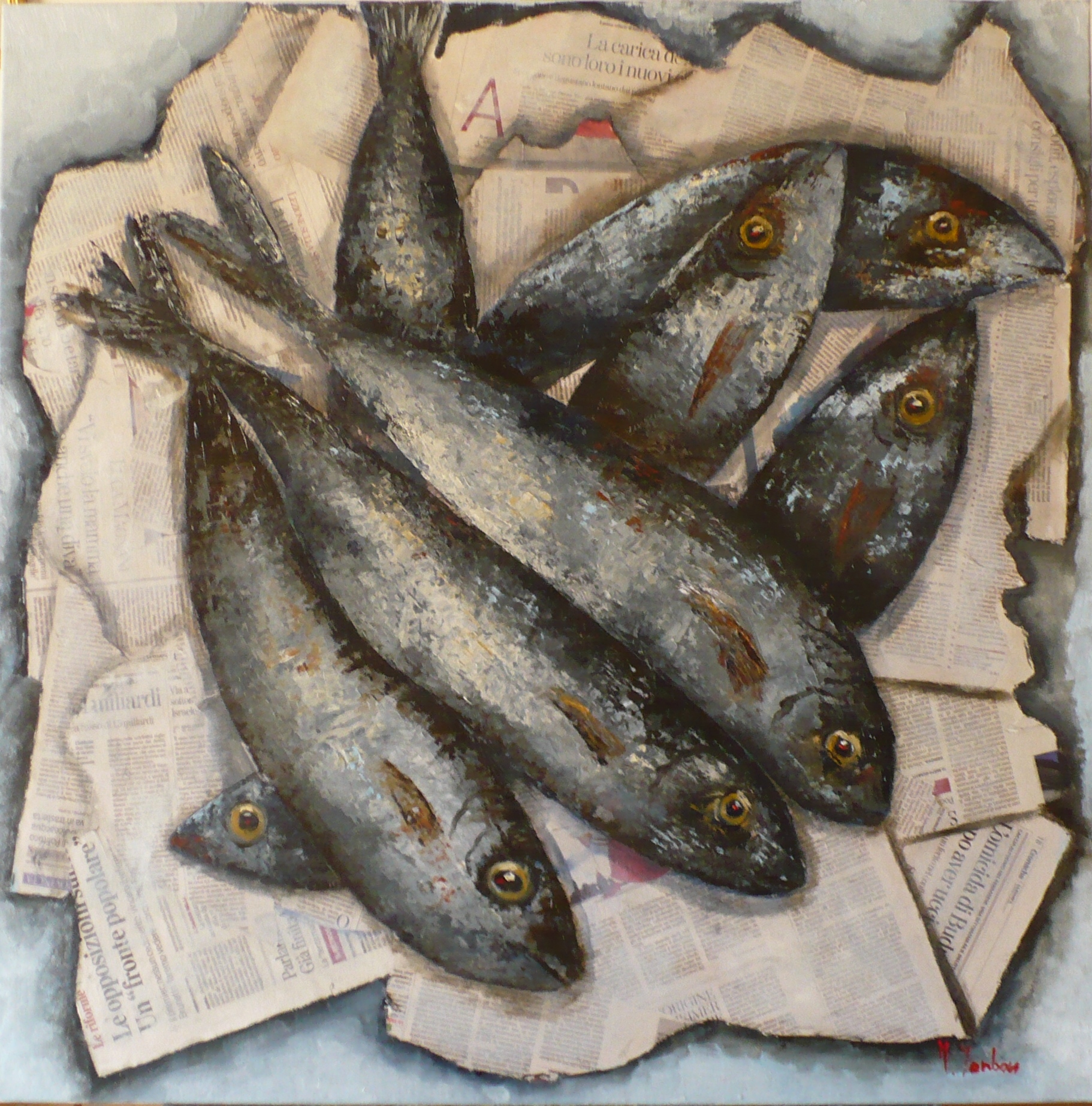 Pesci su sfondo azzurro Painting, Still life, Oil, 80x80x2cm pesci giornale Added 8 years ago 7 I Like I don't like 0 Comments 110 Visits Share Facebook Twitter Google + Has been liked by 7 ENZO PIROZZI Artist - Pescia, Italy Paul Brotherton Graphic artist, Painter - Manchester, United Kingdom Luciana Maini Premium Artist - Ravenna, Italy EMMANUELA Artist - Biella, Italy Cat Photographer - Strasbourg, France Tanya Bartolini Premium Artist - Milano, Italy renato mericco Artist - Milano, Italy Comments 0 Say something You must login or Sign Up to write a comment Join