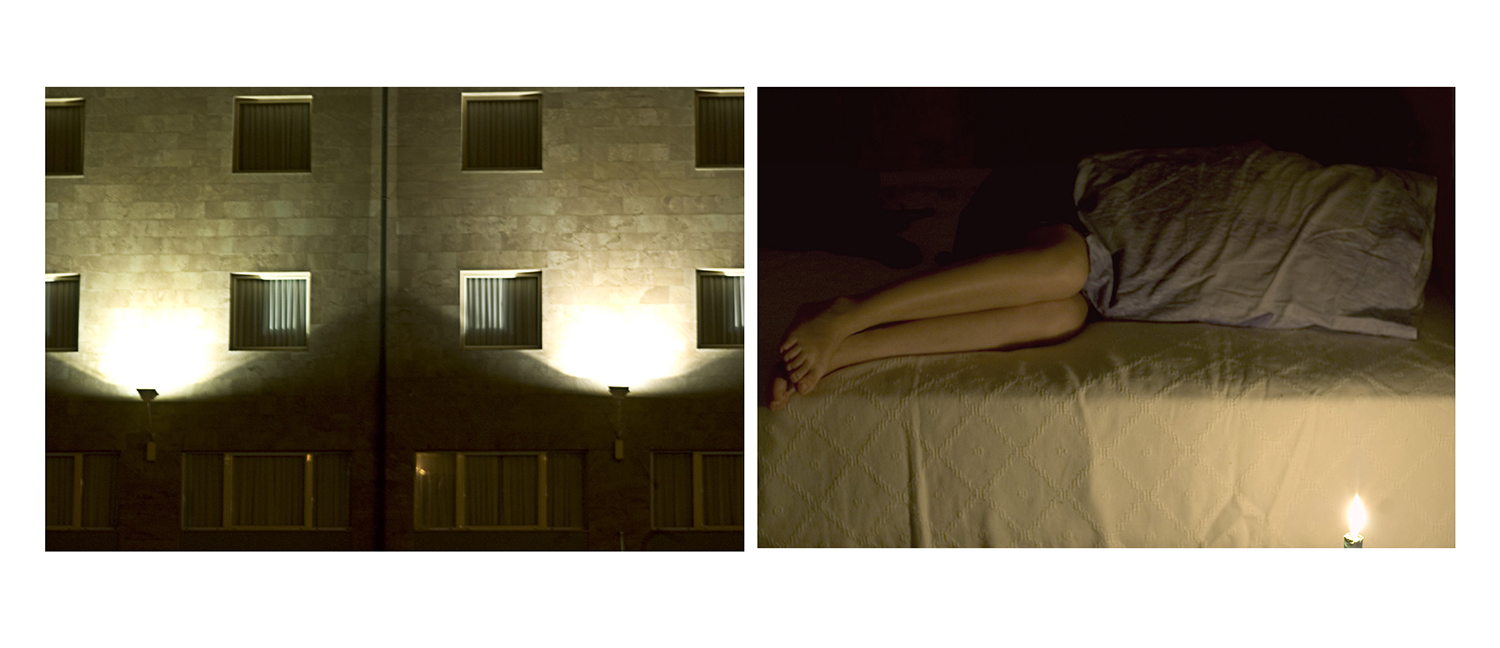 C'è un capovolgimento dialettico,una permutazione di fattori: in realtà trovo che nell'immanenza glaciale ,siderale di questa palazzina notturna ,con i faretti -stranamente- puntati alle stelle, l'involcro architettonico celi in realtà vita (dormiente).Mentre nel corpo inerme e dormiente la vita sia in in realta solo nell'involcro,nella presenza di un corpo...Interessante questo sincretismo quasi cinematografico attraverso il dittico,complimenti!