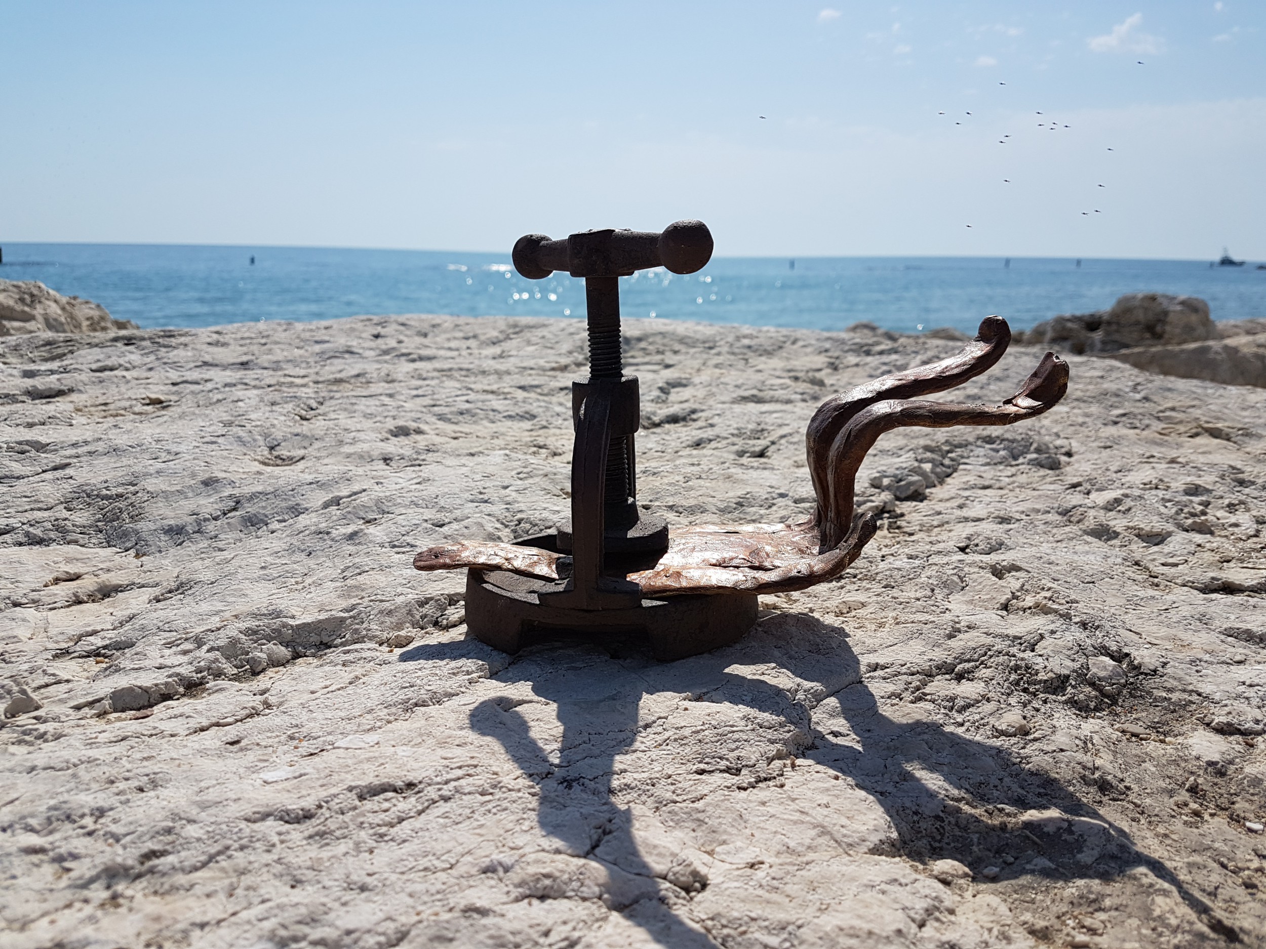 The crushed man rappresents the pressure that i sometimes feel.In my case its the pressure of lack of time to enjoy what i am doing.The cracker crushes and puts pressure on an allready suffering body.I hope to transmit a message with this sculpture to slow down and enjoy life simply by beeing alive.