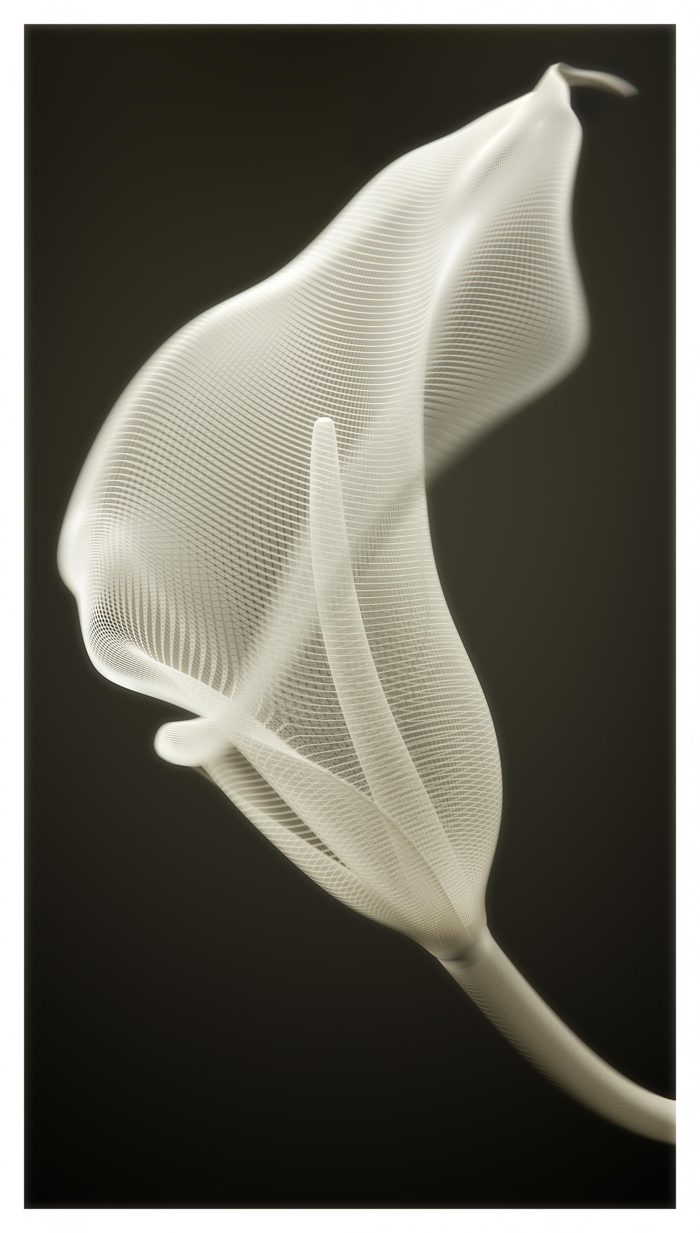 "Inflorescence" was created and textured using 3d computer graphics software and rendered using a rendering engine that uses global illumination algorithms.