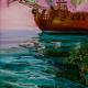The painting is inspired by a real ship for tourist walks in the city of Varna and at the same time it is an allegory of theatrical production, which features a stage decor, a canvas-raising curtain and a trumpet actor. The woman, a source of inspiration, is present as a sculpture of bronze on the ship's nose, floating above the waves that are not visible but taking part in the picture as reflections on the shell of the ship. Seagull in a shaving flight goes over the bulging sails from the night breeze ....