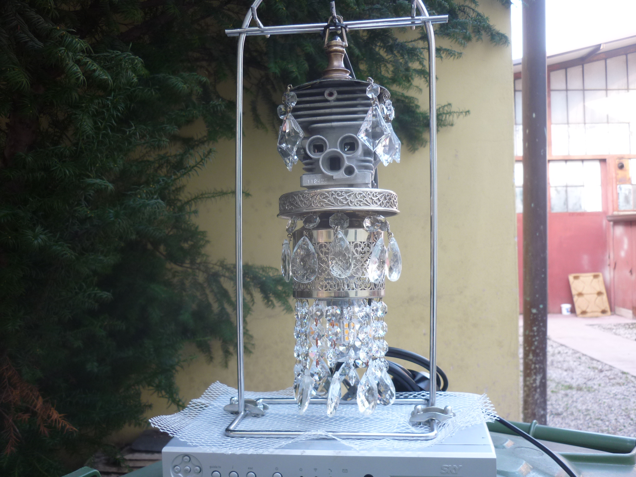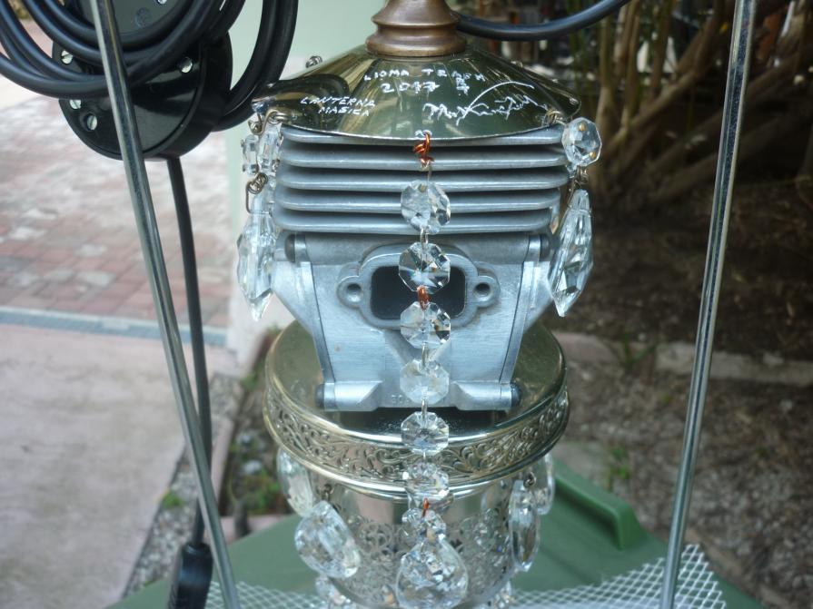 LANTERNA MAGICA Sculpture, Fantasy / Visionary, Metal, 14x49x14cm http://lionellom.wixsite.com/trashart/product-page/lanterna-magica A differently arranged aplique, combined with drops of a Venetian chandelier and the head of a chainsaw, make up this very bright lantern, which can be used as a table or, better, hung from the ceiling. Quotation € 320 Added 7 years ago 1 I Like I don't like 0 Comments 194 Visits Share Facebook Twitter Google + Has been liked by 1 Tanya Bartolini Premium Artist - Milano, Italy Comments 0 Say something You must login or Sign Up to write a comment Join
