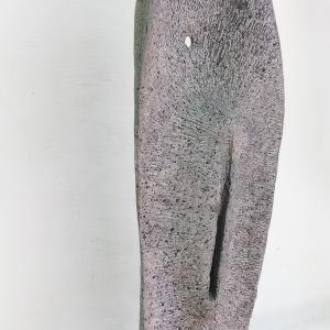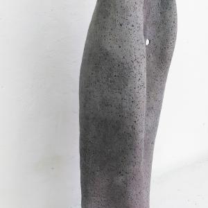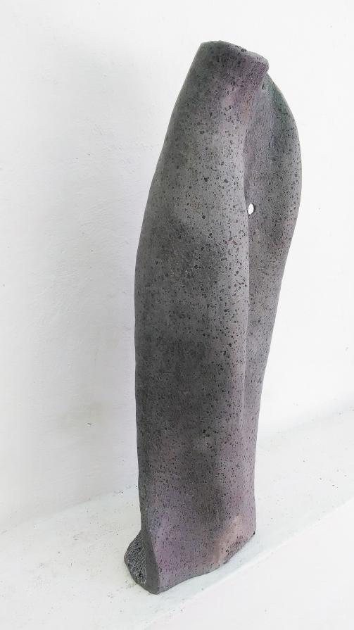 the sculpture depicts the concept of the transformation of the body from male to female. A smooth and smooth part, with soft curves, hollows and a vertical development. The back, rough, harsh with concentric marks that go towards a structure that represents a female pubis.