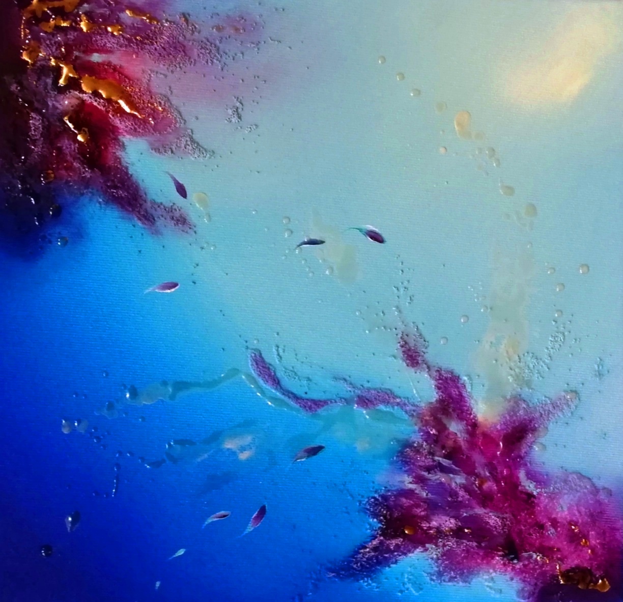 Barbara Ghisi. Coralli viola. Tecnica mista olio, rilievi e resine su tela. Visione al buio. Coralli viola by Barbara Ghisi Painting, Animal, Nature, Landscape, Feelings, Mixed technique, 30x30x3cm Light Purple natura mare acqua vita paesaggio marino coral coralli luminescenza light Added 4 years ago 6 I Like I don't like 0 Comments 363 Visits Share Facebook Twitter Google + Has been liked by 6 Ettropeppe Artist - Pescara, Italy Thomas Dielman Artist - Brussels, Belgium Maristella Angeli Artist, Painter - Macerata, Italy DELATOUR Alain Artist - Sedan, France Tanya Bartolini Premium Artist - Milano, Italy Lucio D’Amato Artist - Torre del Greco, Italy Comments 0 Say something You must login or Sign Up to write a comment Join