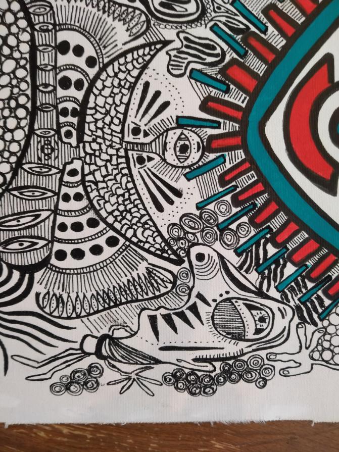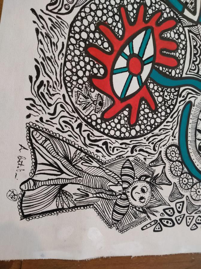 This pictorial phase of mine continues. I'm having so much fun drawing all these figures that come out of my hand as if they were always inside me. As always happens since I paint everything takes shape in the most natural, magical and divine way there is...! I am only the medium of the creative force that everything is. Recommendation for anyone wanting a classic frame.