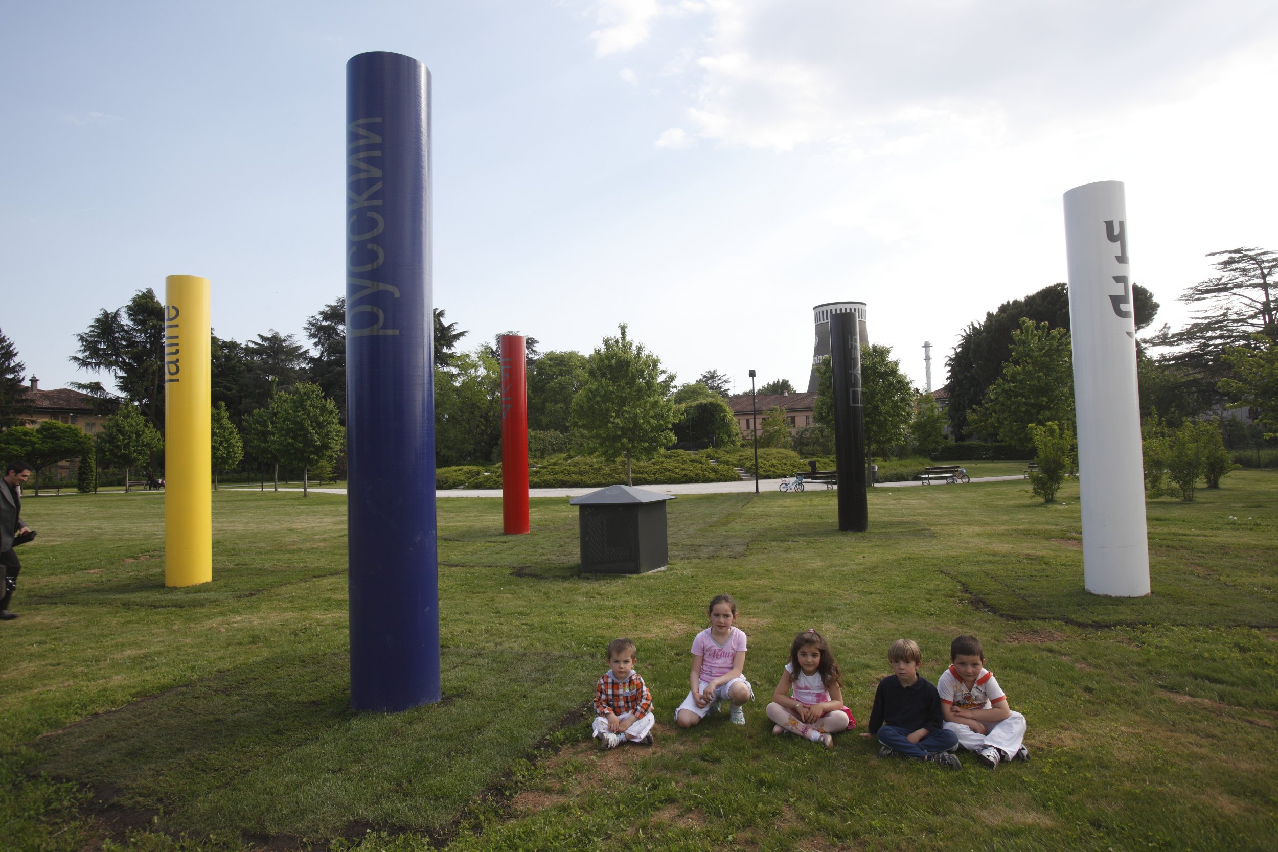 Five columns of different colors, in fact, stand in the open, gathered to form a pentagon, then represent a point of meeting minutes and that sound, from the earth, tend upwards. The three primary colors of the bodies that sprout from the ground complement conglomerate so many black and white bodies, namely the addition and subtraction of the first light. But any color is then combined with a song, a litany or mantra, namely the five expressions and vocal sound on the greatest religious and philosophical doctrines in the cathedrals of Chickpeas, are presented as a form of prayer, meditation human , individual and collective. The song, after all, is the high point of religious expression, such that in Christian worship is practiced in the apse and the choir behind the altar, almost privileged position even to those who exercise the priesthood. The song thus becomes the most practical approaches to the divine, is the raising to the sky, and through these colorful cathedrals, even in the desert, becomes a truly point of union between heaven and earth. The horizon. "Claudio Cravero (curator independent).