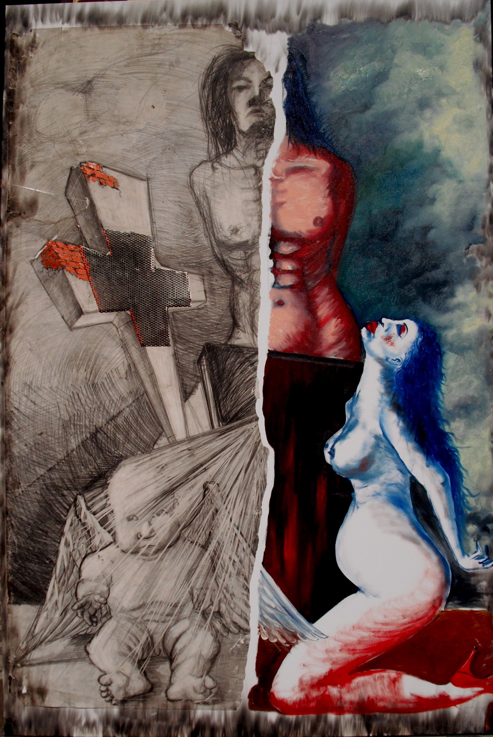 Trinity Painting, Fantasy / Visionary, Human figure, Sacred / Mythological, Mixed technique, 100x150cm Canvas Mixed technique woman sacred baby pregnant angel demon choice decision Inspired by contemporary literature, personal acquaintances, and the tenacious women i know. New York (Expectations 2010) Added 15 years ago 2 I Like I don't like 0 Comments 382 Visits Share Facebook Twitter Google + Has been liked by 2 Diana Höding Artist - Magdeburg, Germany Amalia Gil-Merino Artist - Hannover, Germany Comments 0 Say something You must login or Sign Up to write a comment Join
