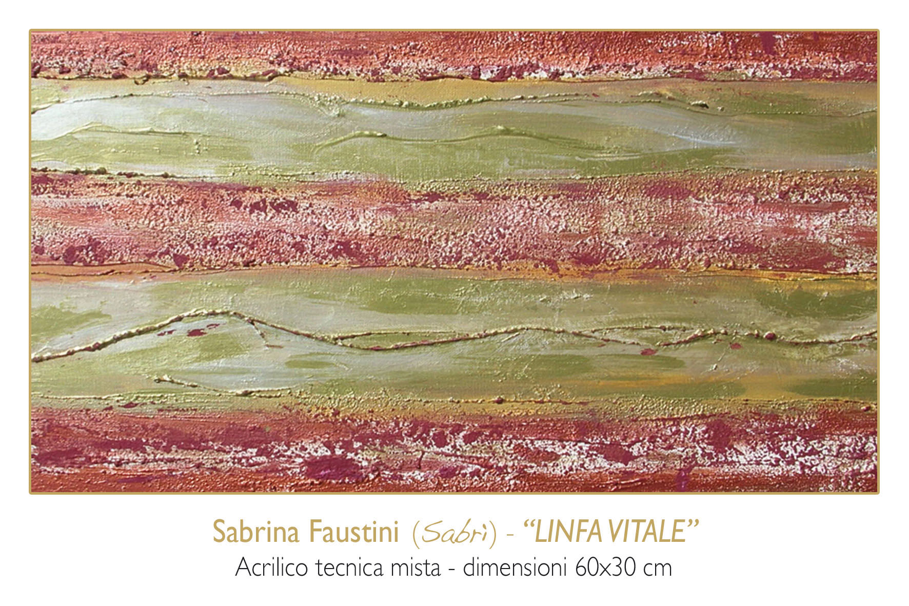 LINFA VITALE Painting, Abstract informal, Mixed technique, 30x60x2cm Canvas Mixed technique informale Added 17 years ago 1 I Like I don't like 0 Comments 117 Visits Share Facebook Twitter Google + Has been liked by 1 Tanya Bartolini Premium Artist - Milano, Italy Comments 0 Say something You must login or Sign Up to write a comment Join