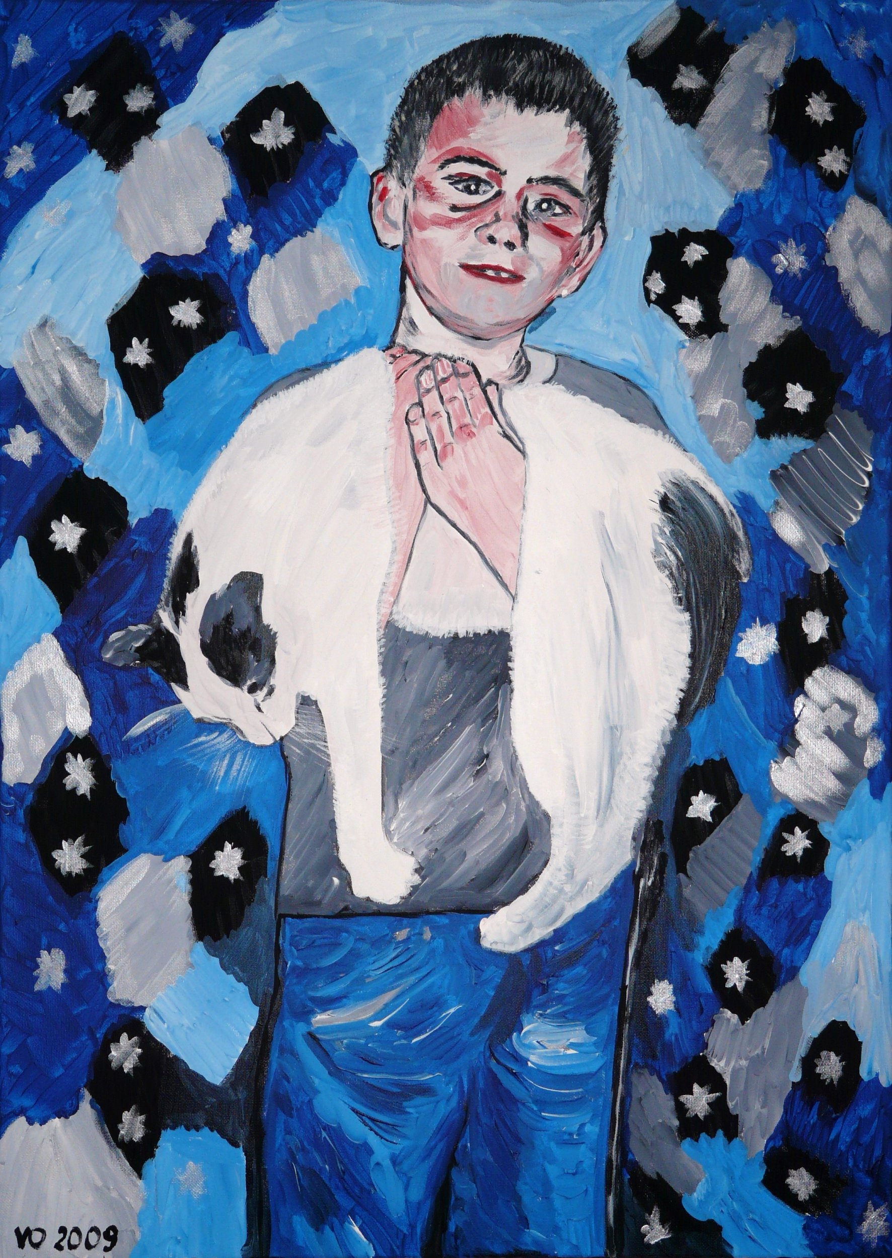 Max holding Snowflake Painting, Human figure, Portrait, Animal, Acrylic, 50x70cm Canvas Acrylic portrait face boy child max cat pretty kid infant youngster cute adorable snowflake rel Though Snowflake is just an ordinary European Shorthair cat, sometimes she behaves like a Rag Doll. She may relax her limbs completely which looks pretty funny when she is hold by a small boy. Painting (Celeste Prize 2010) Added 15 years ago 8 I Like I don't like 3 Comments 392 Visits Share Facebook Twitter Google + Has been liked by 8 Forma Artist - Belgrade, Serbia Tanya Bartolini Premium Artist - Milano, Italy Jane Ostler Artist - Colchester, United Kingdom Daniele Gori Artist - Faenza, Italy Igor Eugen Prokop Artist - Budapest, Hungary Fabio Modica Artist, Painter - Catania, Italy Leo Zaff Artist - Venezia, Italy Alfonso Siracusa Artist - Agrigento, Italy Comments 3 15 years ago Dem Wolfe Artist Again... The truth of children it that they always portray the truth about everything in life! Classic and beautiful! 15 years ago Christiane Bernreuther Artist Hallo, Valerie! Schön, wieder neue Werke von Dir zu sehen und vielen Dank!! Grüsse aus Hamburg, Christiane 15 years ago ANA SEKACH Artist, Painter Complimenti Valeria, bella opera! ma anche Lei fa bellissimi paesaggi! migliori aguri! Say something You must login or Sign Up to write a comment Join