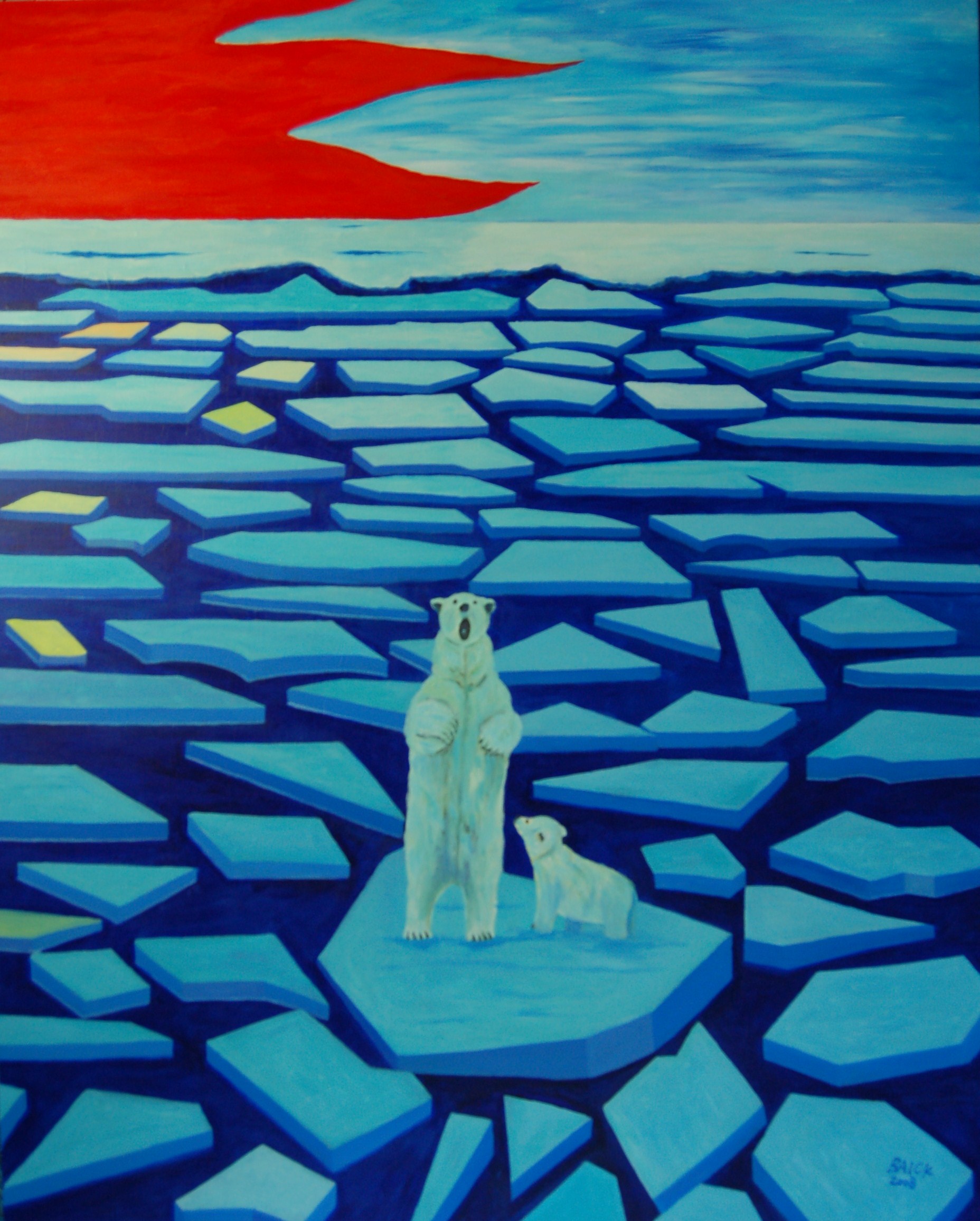 Amongst all the global issues in this world today, the environmental issue is an important one. Environmental issues do not only affect us humans. It also affects nature, including animals. The polar bears in my painting represent the animal kingdom and how environmental issues readily affect them as well.