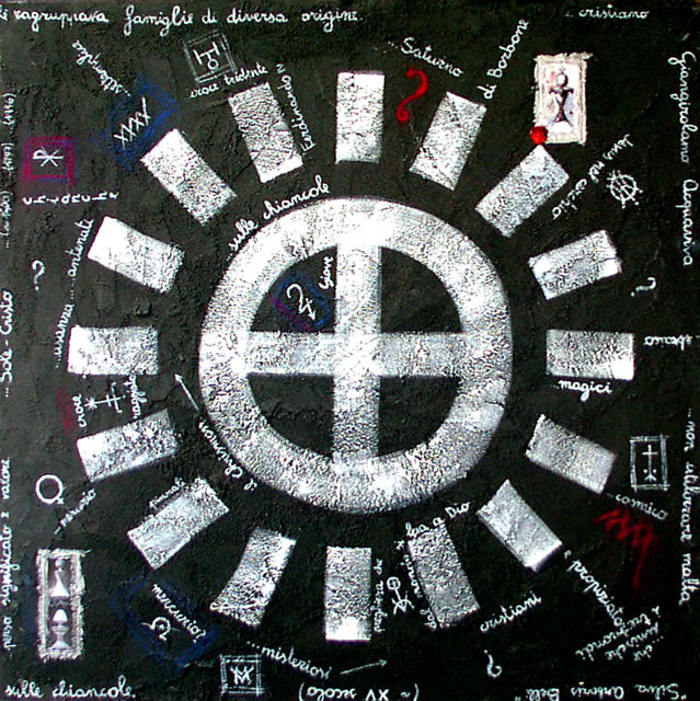 Sole Cristo Painting, Abstract geometrical, Mixed technique, 100x100cm Wood Mixed technique Painting (Premio Celeste 2007) Added 18 years ago 0 I Like I don't like 0 Comments 91 Visits Share Facebook Twitter Google + There are no likes Comments 0 Say something You must login or Sign Up to write a comment Join