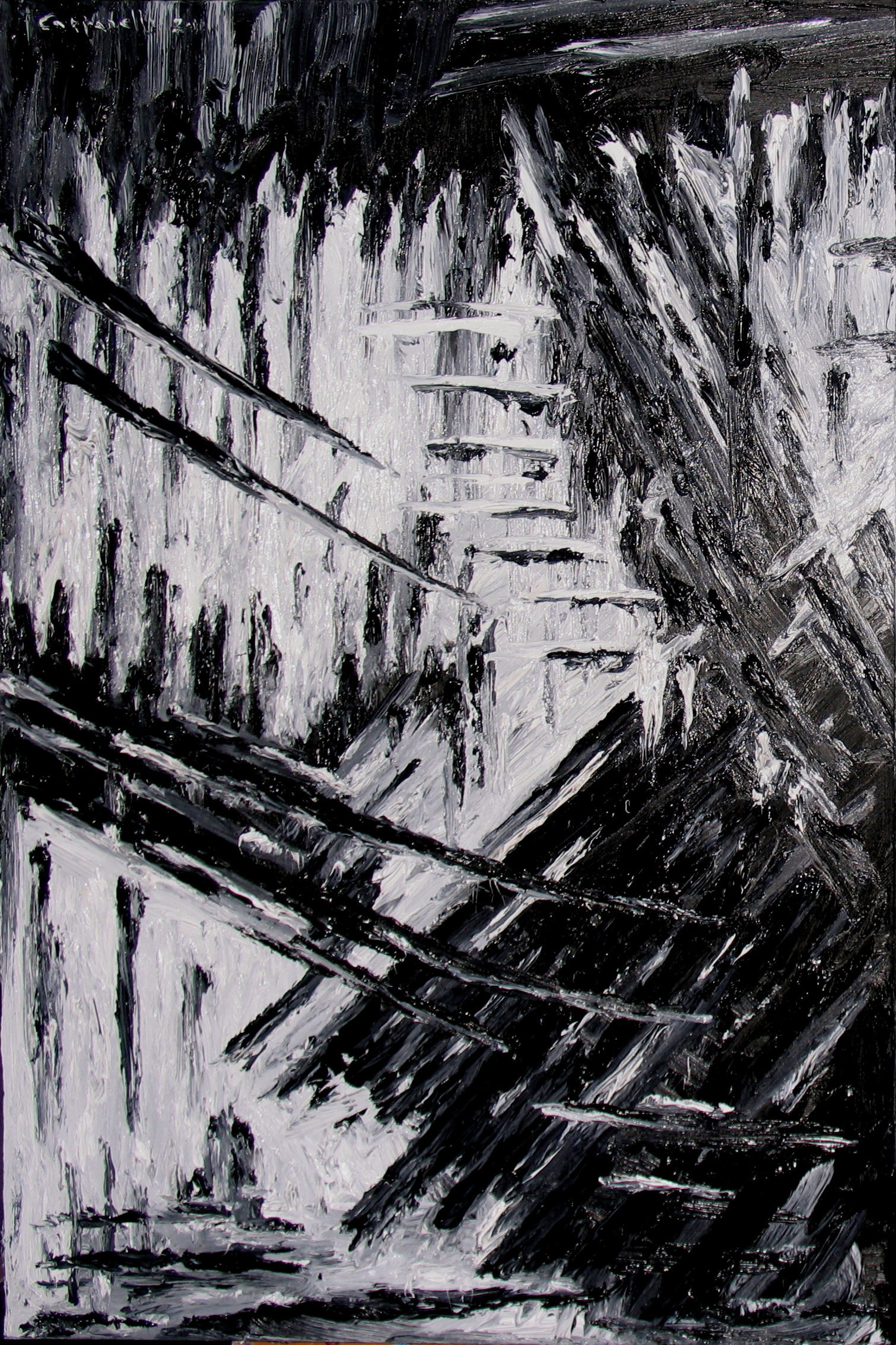 Abstract # 154 ( Difficoltà .... ) Painting, Abstract informal, Oil, 100x150x4cm Canvas Oil astratto Added 14 years ago 1 I Like I don't like 1 Comment 80 Visits Share Facebook Twitter Google + Has been liked by 1 Maria Cristina Neviani Artist - Modena, Italy Comments 1 14 years ago Maria Cristina Neviani Artist Il B/N induce lo sguardo a concentrarsi sul segno, lo slancio ampio e alla ricerca di spazio della pennellata istintiva sembra essere contenuto da una esigenza di ordine e controllo. Opera di grande fascino. Say something You must login or Sign Up to write a comment Join