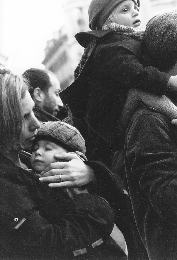 This is one of the pictures taken during the italian manifestation "Se non ora quando? " "If not now, when?" in defence of our italian women, mortified by the berlusconian polytical and behavioural model, poor and arrogant. I tried with this and other pictures to give the real image of the italian people, particularly of the women. In this particularly I've tried to represent a mother love and its intensity; it is so hard and intense that "she" can sacrifice her own life.