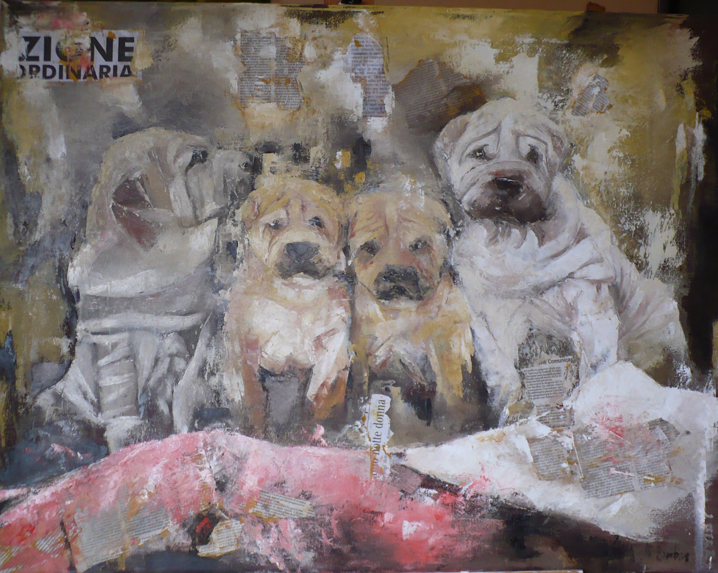Quattro combina guai Painting, Animal, Mixed technique, 90x70x3cm Canvas Mixed technique cane cuccioli Added 14 years ago 1 I Like I don't like 1 Comment 131 Visits Share Facebook Twitter Google + Has been liked by 1 Tanya Bartolini Premium Artist - Milano, Italy Comments 1 12 years ago Tanya Bartolini Premium Artist Sona adorabili...complimenti Say something You must login or Sign Up to write a comment Join