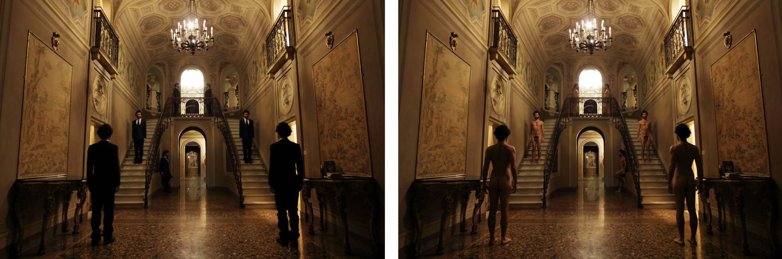 Ciao, io non ci capisco granchè di fotografia, ma questa è affascinante, mi piace il tema, e mi piacciono le domande che ti poni, bella la location con il suo stile e quei colori , ... ed è intrigante ragionare sulla posizione dei personaggi... anzi sulle posizioni del personaggio! bravo