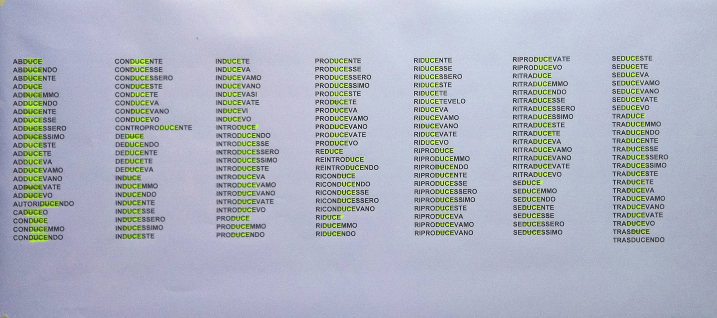 Apologia di reato Painting, Symbol / Letter, Political / Social, Mixed technique, 101x44cm Paper Mixed technique politica censura critica 154 + 1 words containing DUCE (Mussolini) in 22 +1 rows and 7 columns. 154 highlighting of DUCE with yellow marker pen. Added 14 years ago 8 I Like I don't like 5 Comments 380 Visits Share Facebook Twitter Google + Has been liked by 8 mediummixer Premium Artist - Oamaru, New Zealand fiorella siniscalchi Artist - Milano, Italy soqquadro Institution - Roma, Italy Rosa Lamberta Artist - Correggio, Italy CN Artist - Paris, France ferdinando sorbo Artist - Formia, Italy Cat Photographer - Strasbourg, France Enrico Ripamonti Artist - Brescia, Italy Comments 5 14 years ago Gianfranco ferlazzo Artist Se-duce-nte!!OpppSSS....... 14 years ago MAURIZIO FARINA Premium Artist MOLTO INTERESSANTE....COMPLIMENTI 14 years ago monica zambon Artist Bella idea! 14 years ago ferdinando sorbo Artist in italia sembra un reato che una parte del cosidetto popolo, ama molto, e reitera politicamente ogni 50 anni..... 14 years ago Attinia visual artist Artist Molto, molto interessante. Say something You must login or Sign Up to write a comment Join