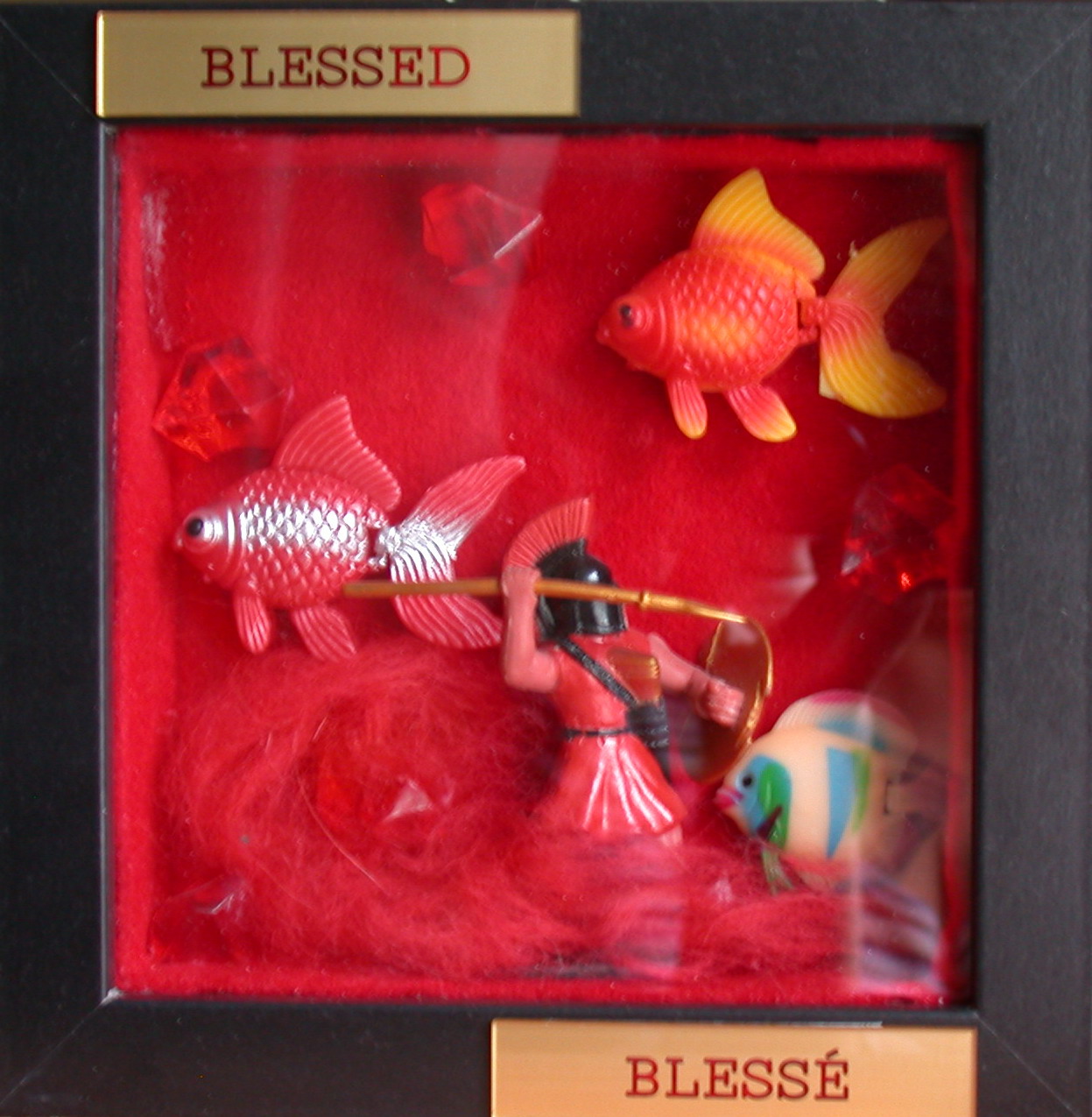 The two plates are a play on words between the English term blessed and the French term blessé, wounded.Hades was the ancient Greek underworld but, unlike the Jewish and the Christian ones, it was actually a physical place: entrances to this realm were located in impracticable, wild, hardly reachable and secret sites.